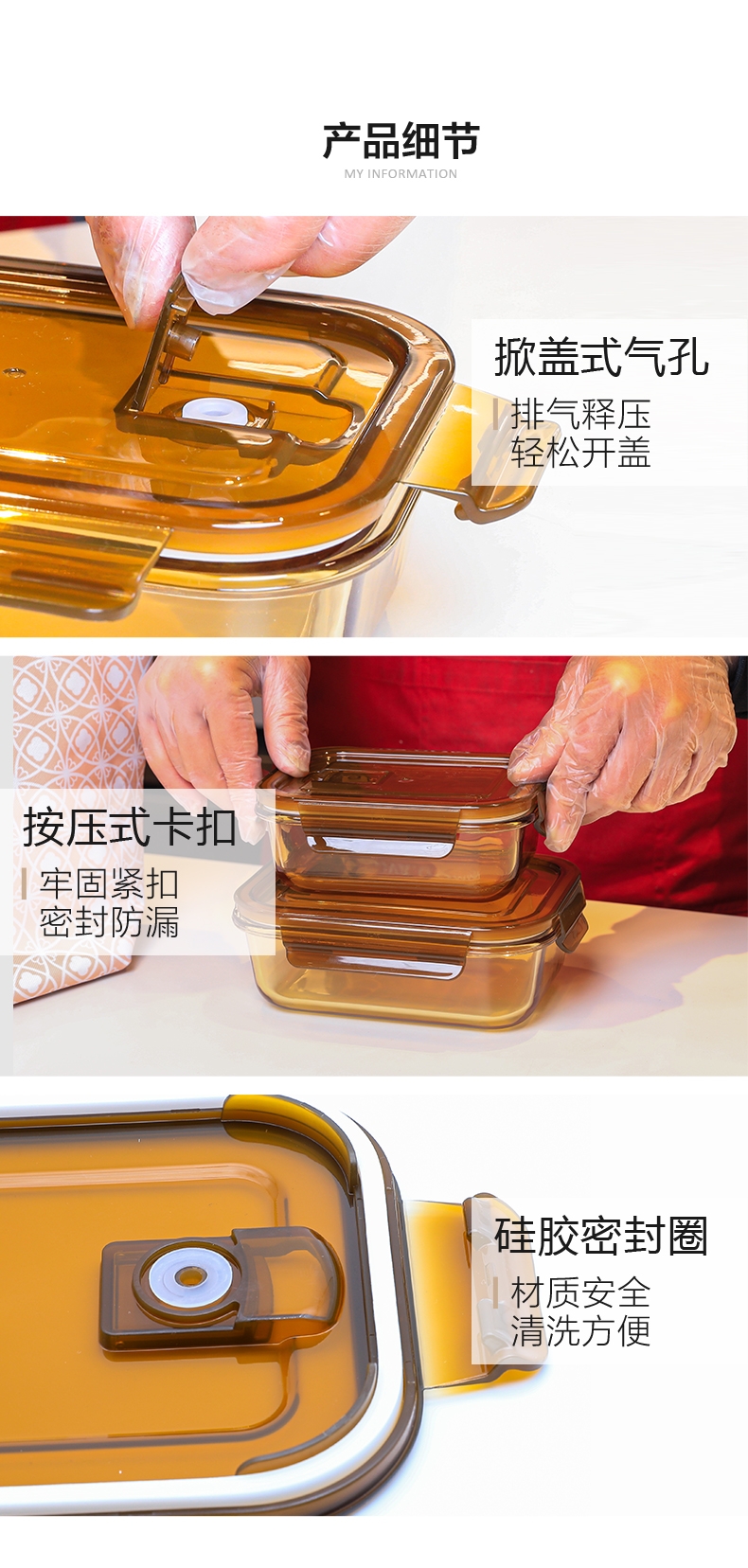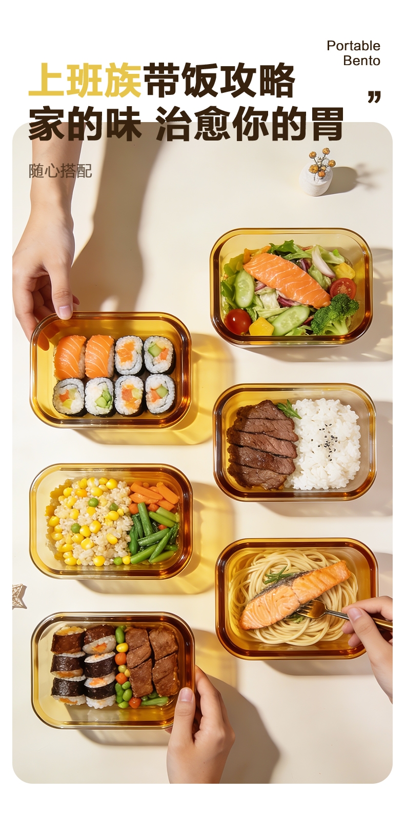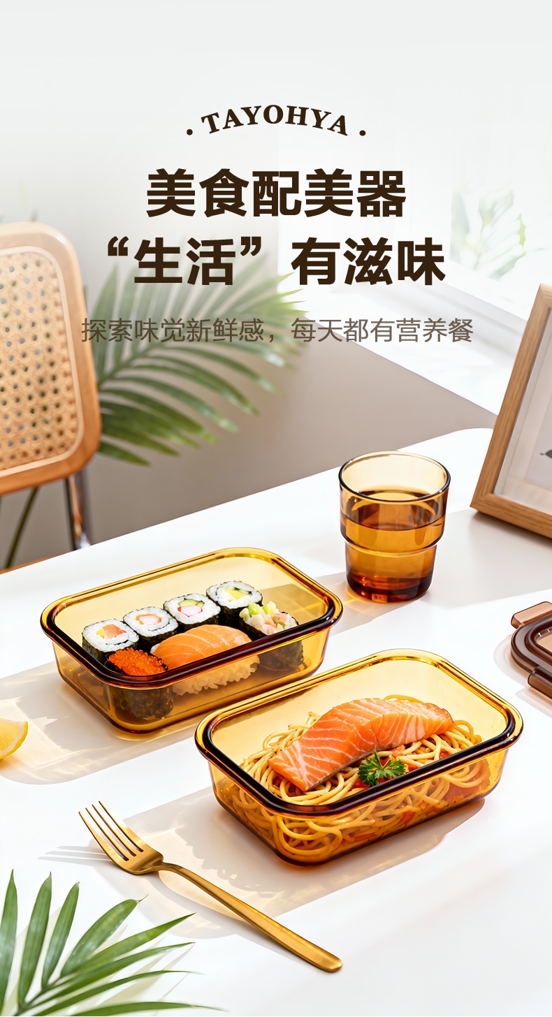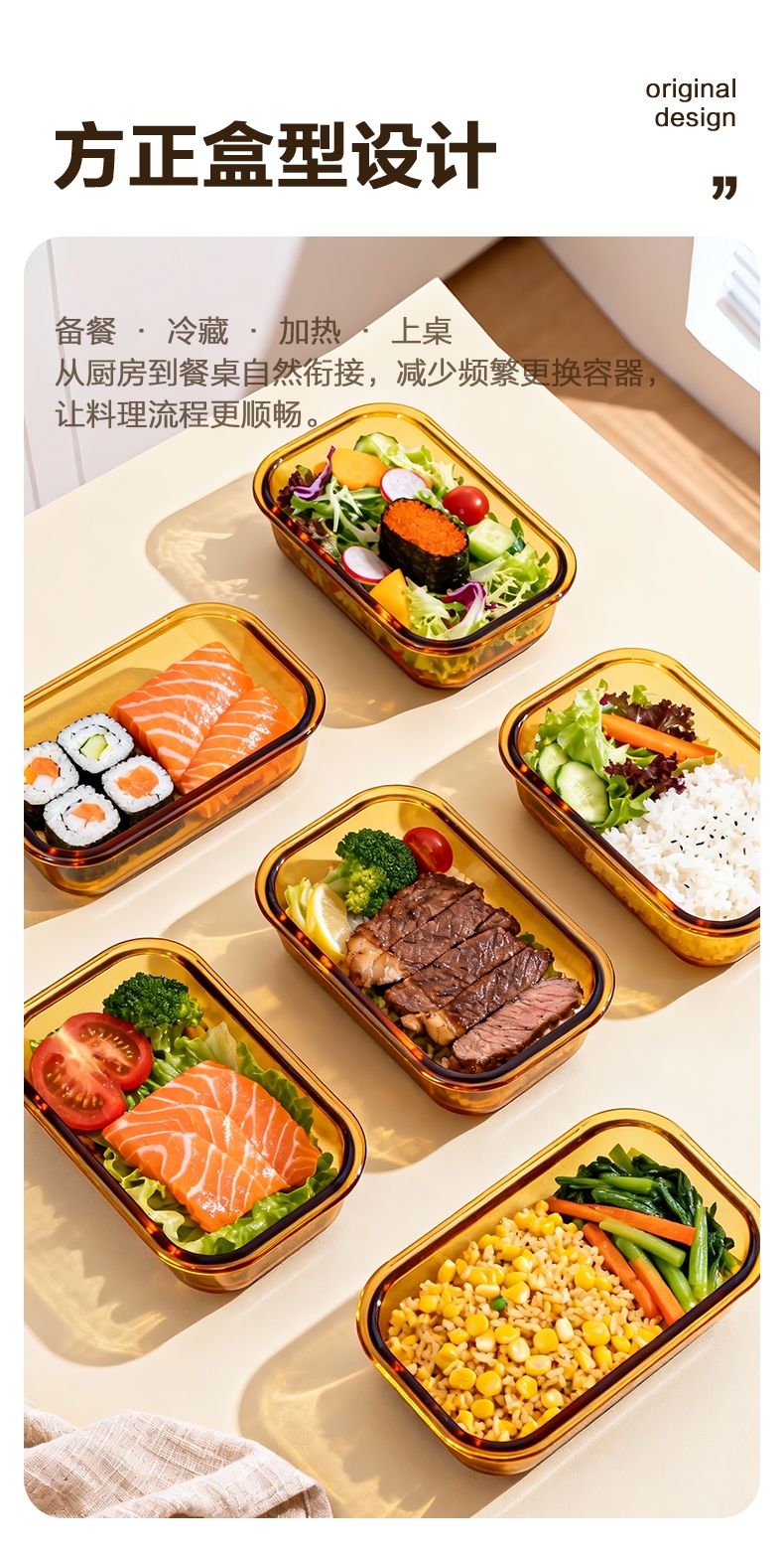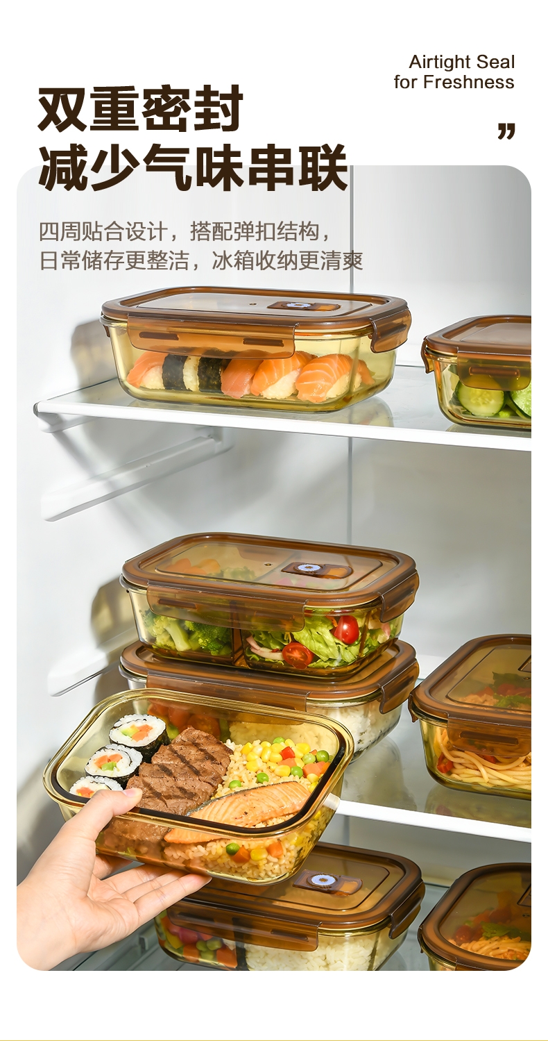 高硼硅玻璃材质,耐高温又易清洗;;多场景使用,从冰箱到微波炉,不串味;;上盖硅胶密封圈,防止外带食材汁水泄露;;时尚手提包,袋口可收缩,面料色泽亮丽;除了携带保鲜盒外,也可做多功能袋外出携带。