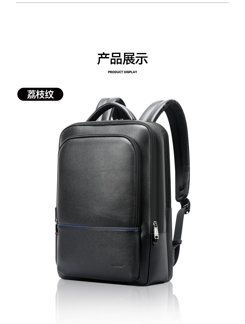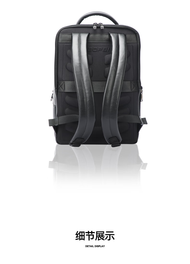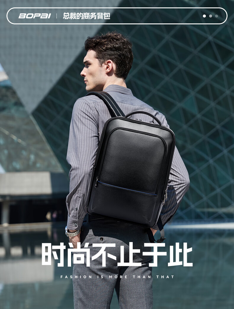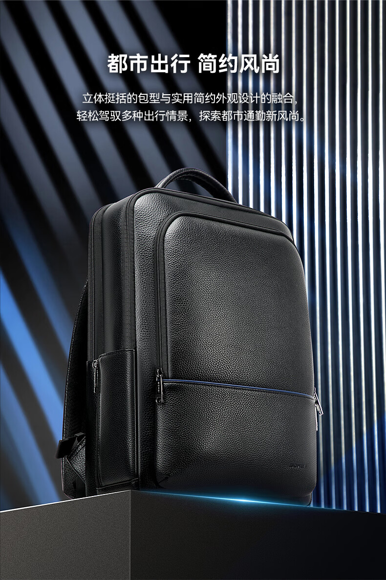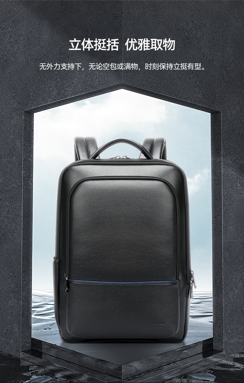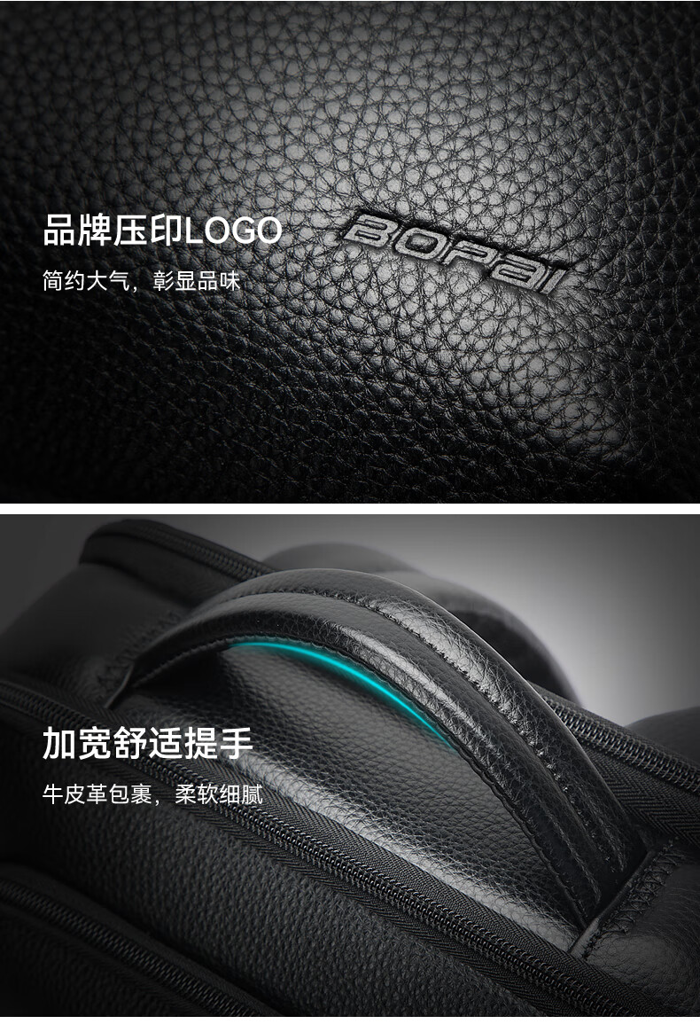 头层牛皮材质,立体有型;独立隐藏水杯位,拉杆固定带;后幅散热设计,抗震减压电脑位