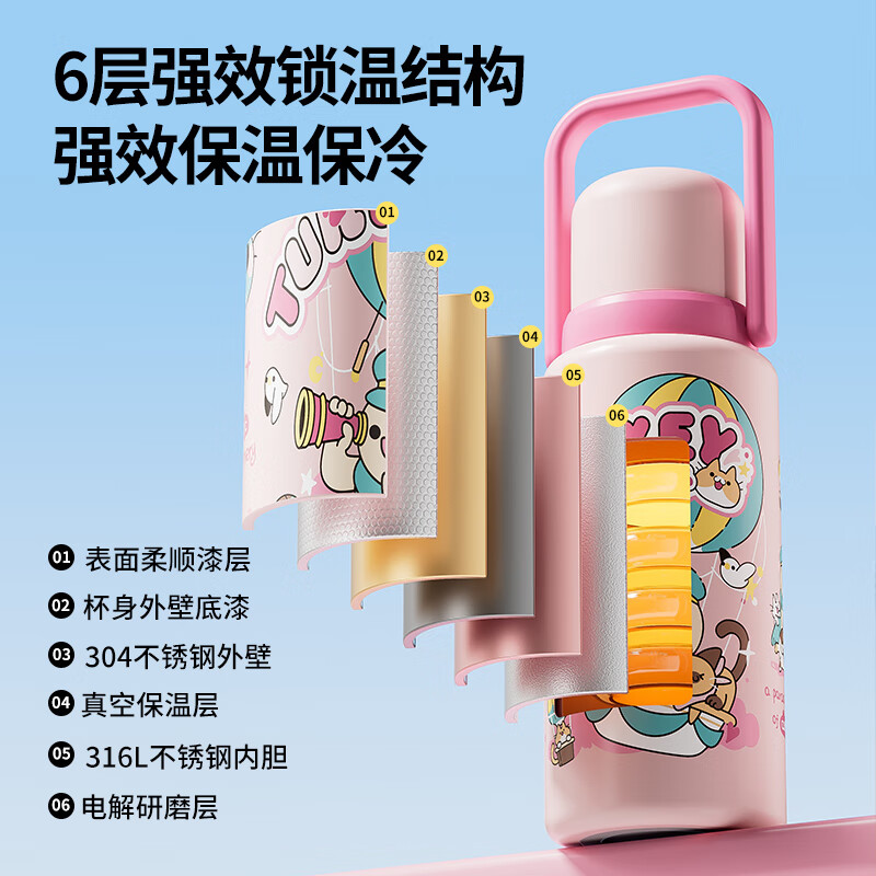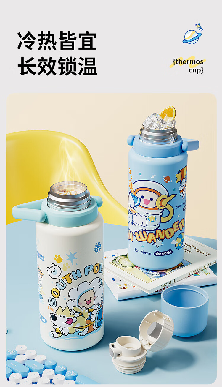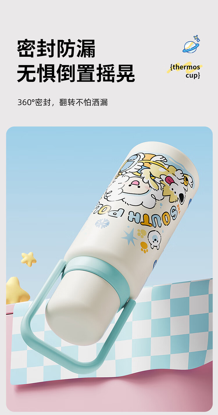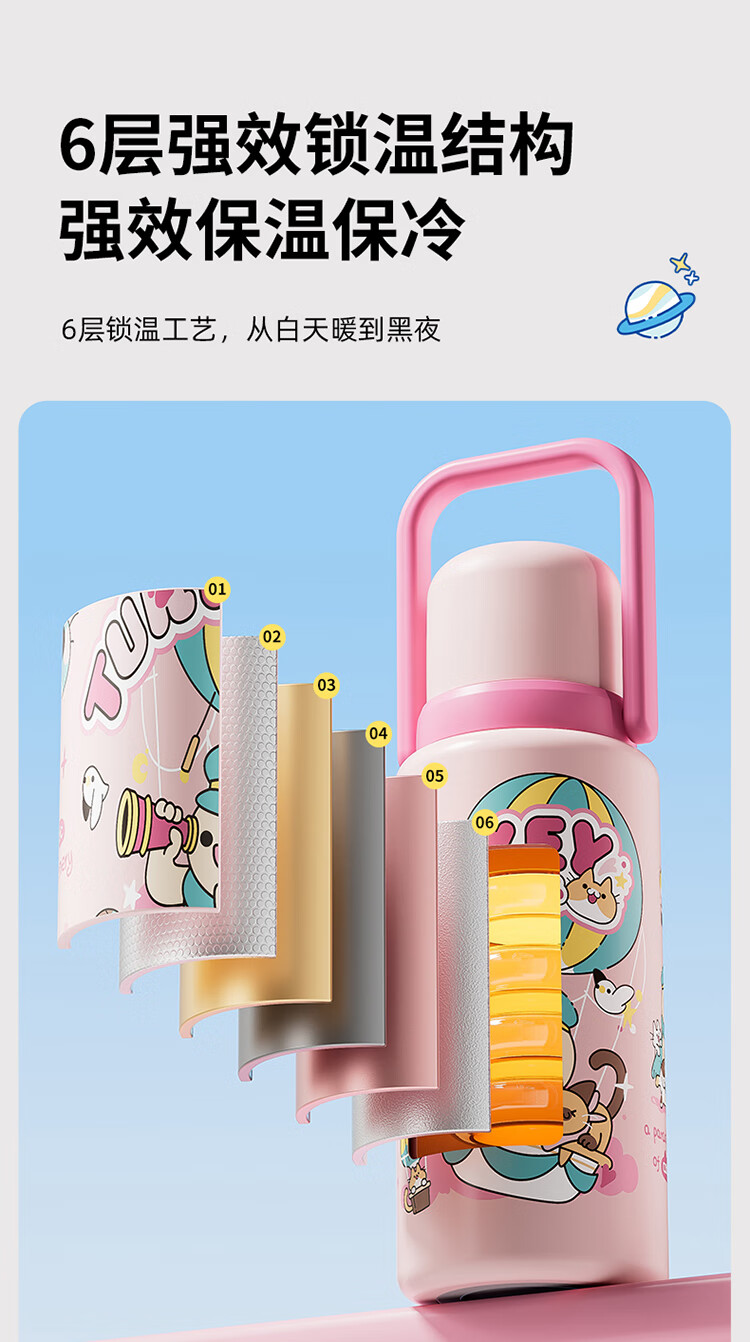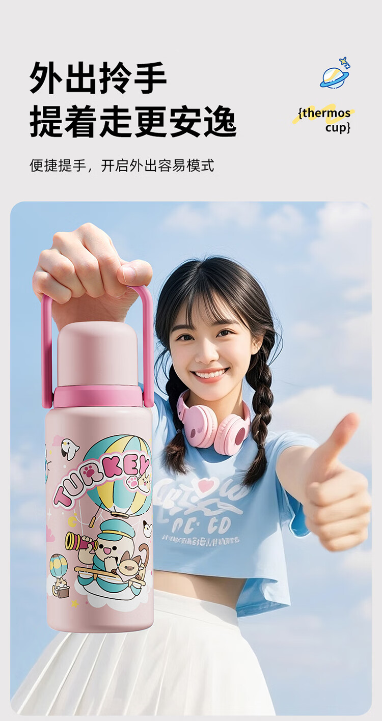 一键开盖,轻松畅快喝水;1000mL超大容量,补水一整天;外出拎手,提着走更安逸