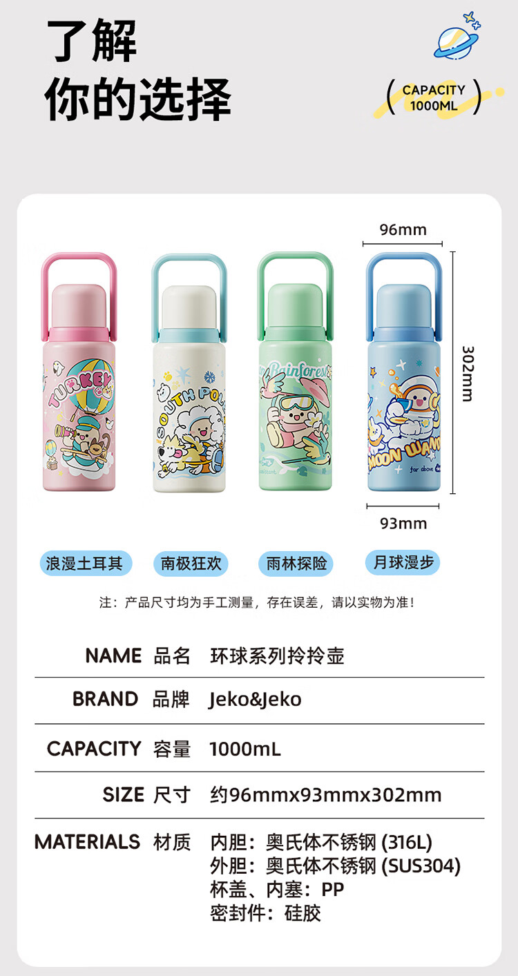 Jeko&Jeko 不锈钢水壶保温杯1000mlSWC-3336/SWC-3337/SWC-3338/SWC-3339