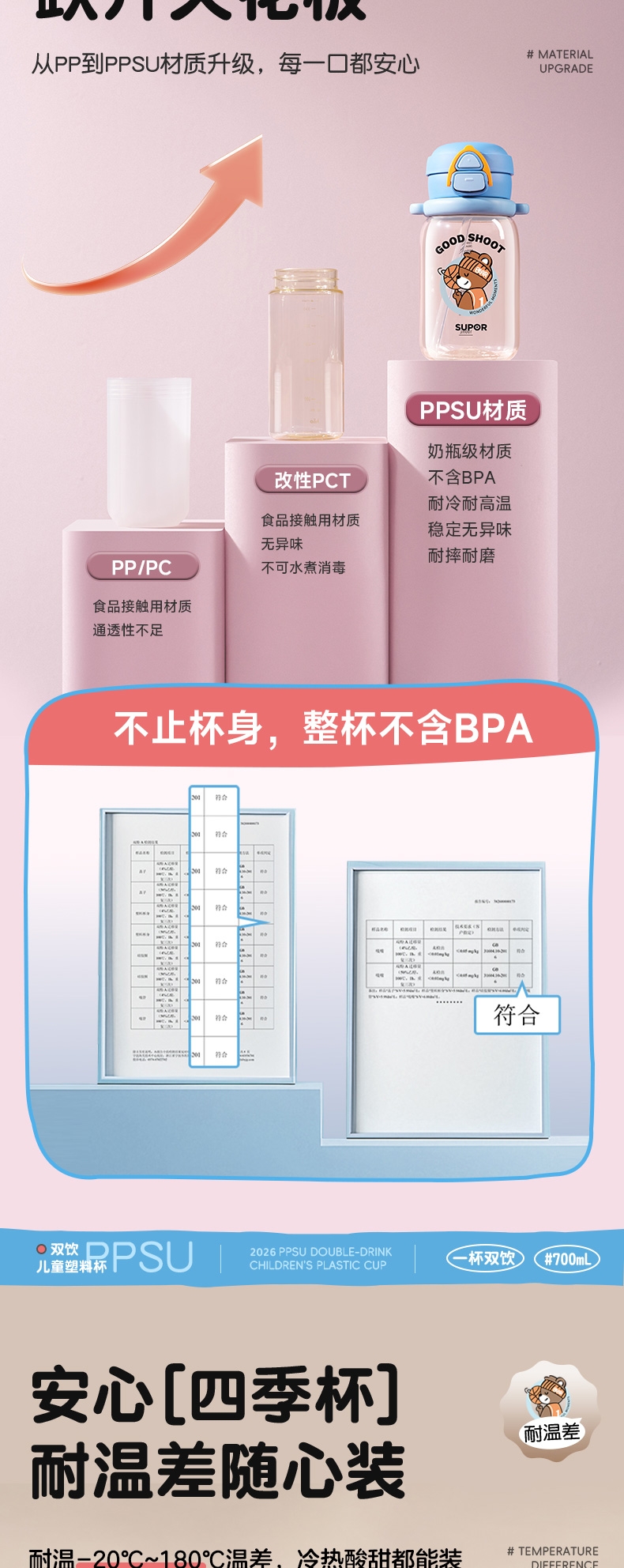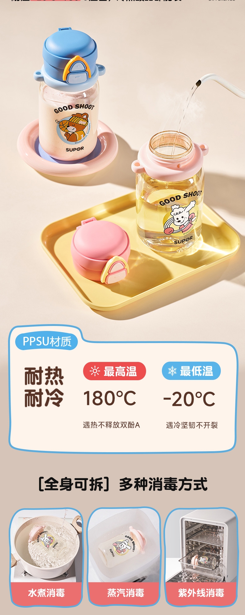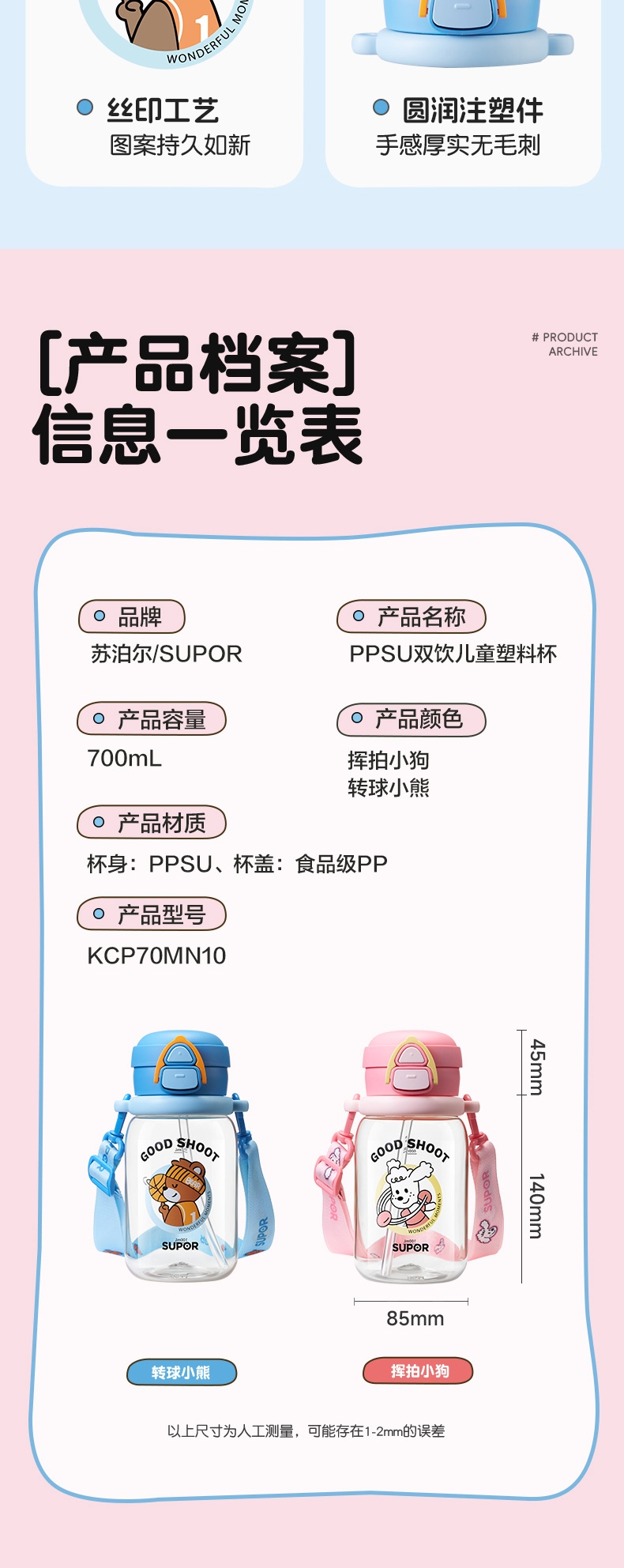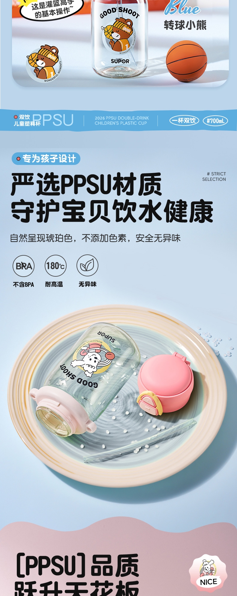苏泊尔 PPSU双饮儿童塑料杯转球小熊KCP70MN10