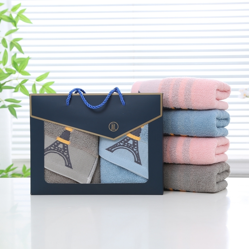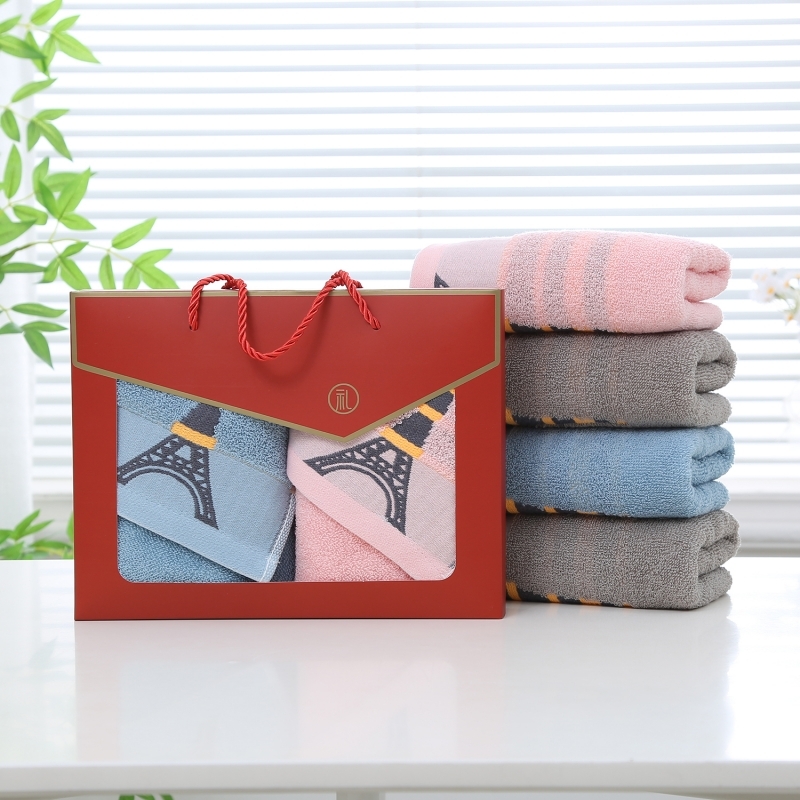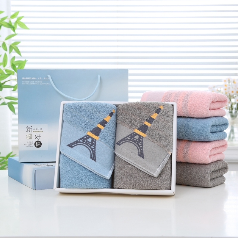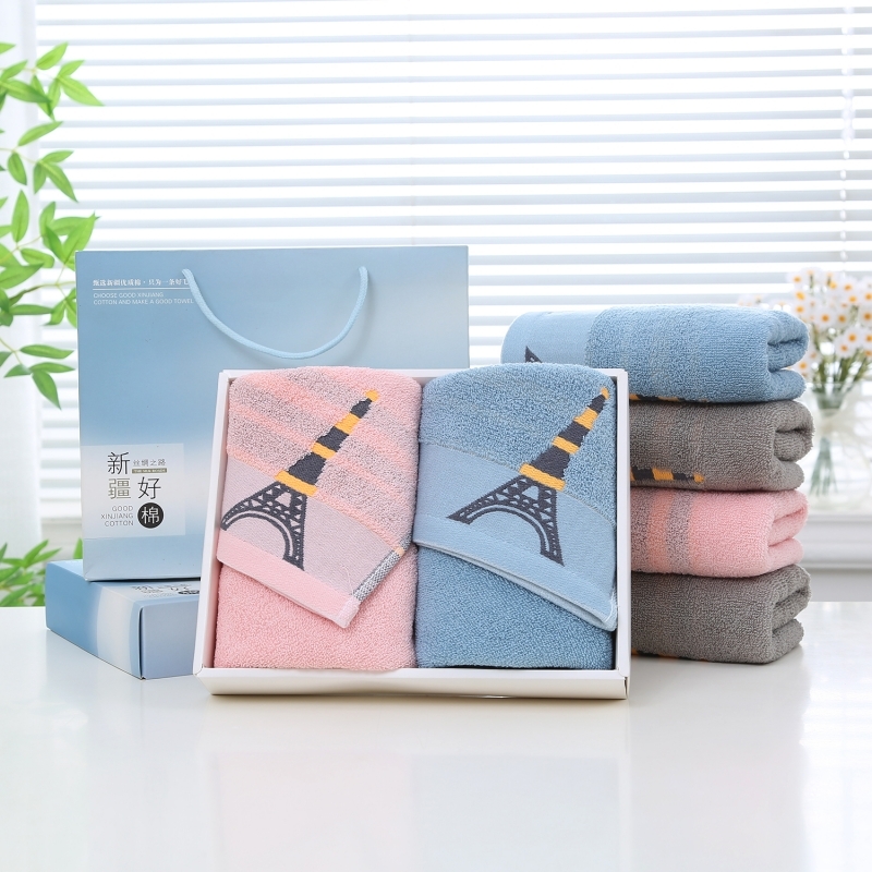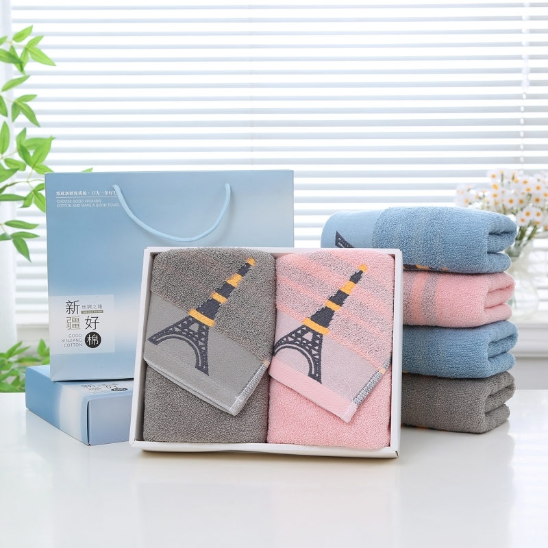 奥来纯 纯棉埃菲尔铁塔双条毛巾礼盒礼品