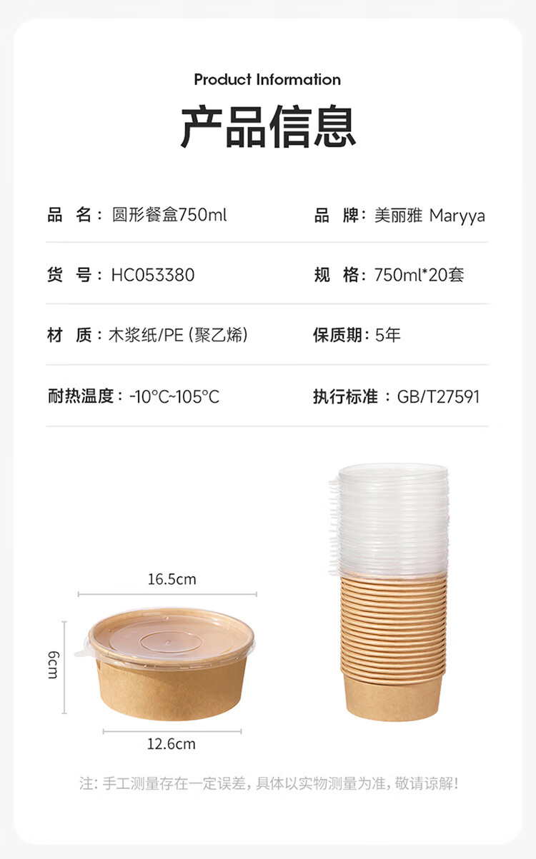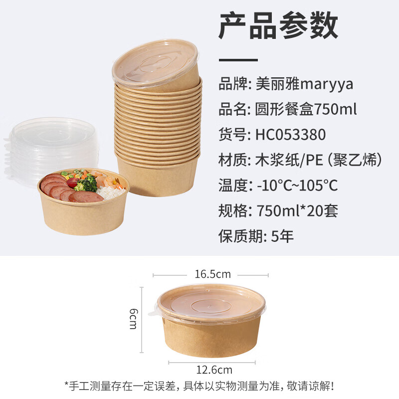 美丽雅 食品级野餐水果圆形餐碗20套HC053380