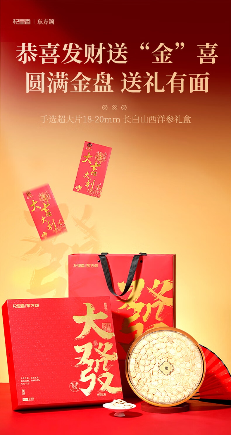 严选长白山核心产区西洋参,参纹清晰,参味浓郁;精选1.8-2.0cm大片,参片厚薄适中,片片优选;高端礼盒装,送礼有面儿
