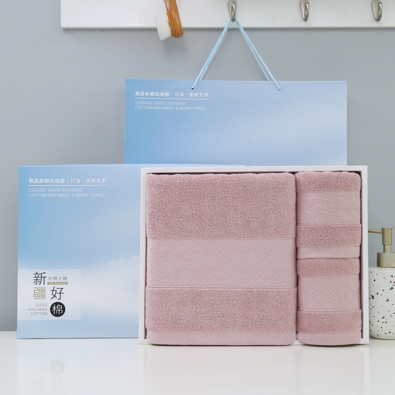 奥来纯 纯棉编织纹浴巾毛巾三件套礼盒