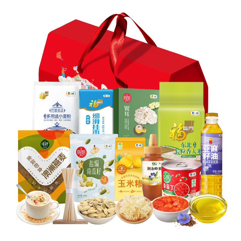 企业福利馈赠,客户答谢,走亲访友;精美礼包,多样选择;米面油,杂粮干货坚果零食茶酒等,一盒包含所有