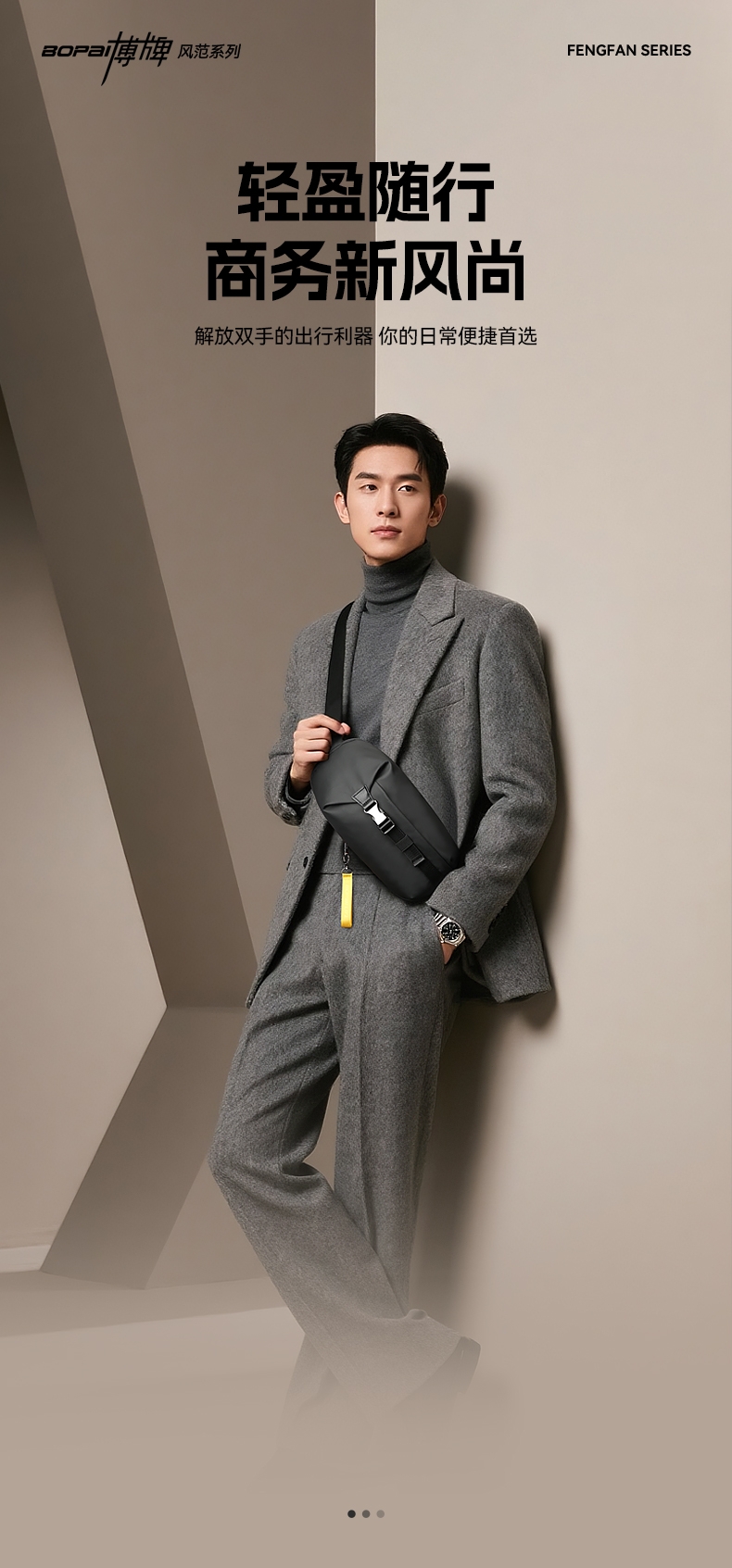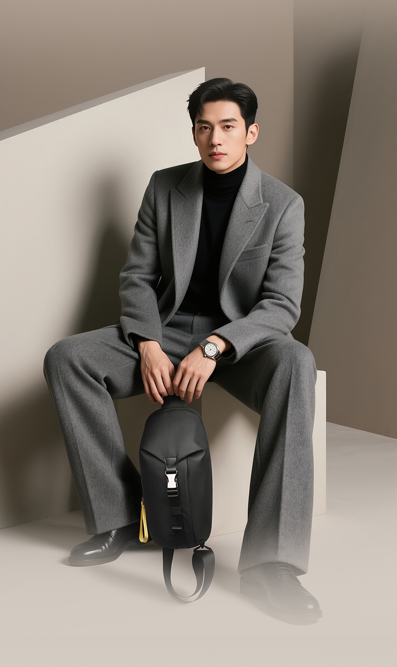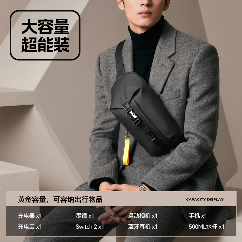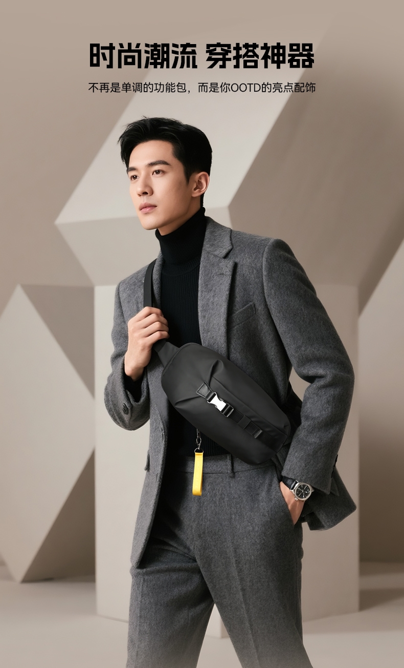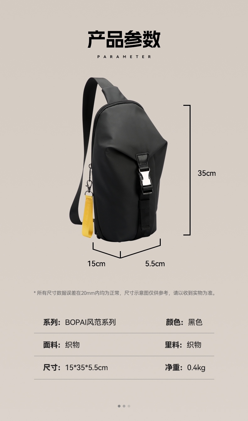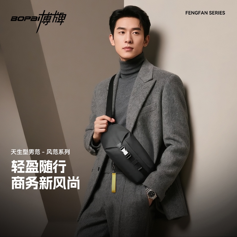 博牌 男士胸包斜挎包商务单肩包骑行包11-132651