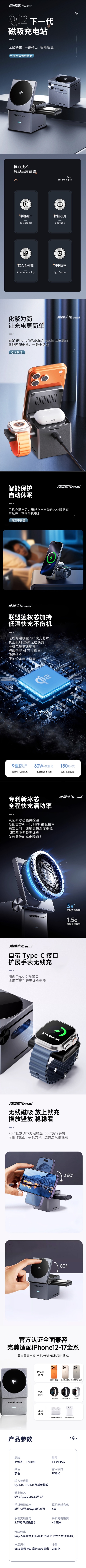配置清单:3合一方块桌面款磁吸无线充 可折叠 灰色*1