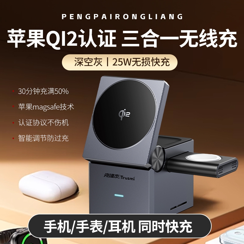 克维杰 3合一方块桌面款磁吸无线充T1-MPP25