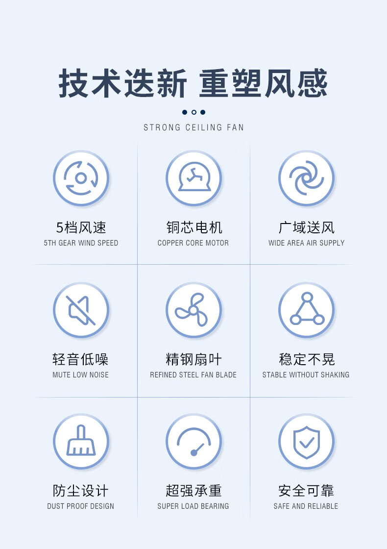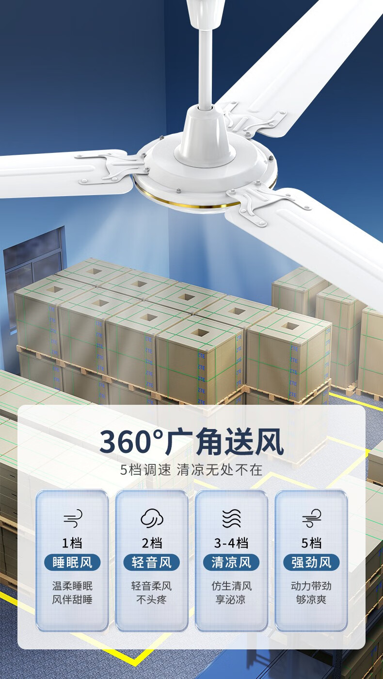 360° 广角送风,5 档调速,满足不同场景需求;凹面金属扇叶,加厚设计,大风量更静音;老品牌品质可靠,买家实测好评,放心选购