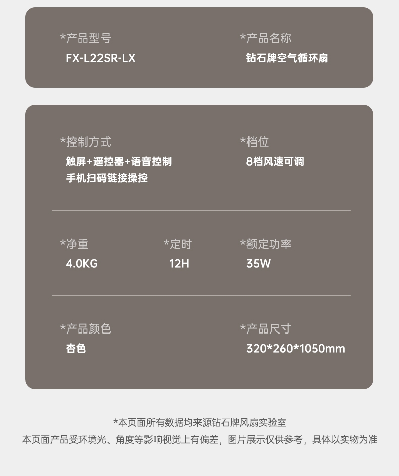 钻石牌 钻石循环扇X8语音遥控落地扇FX-L22SR-LX
