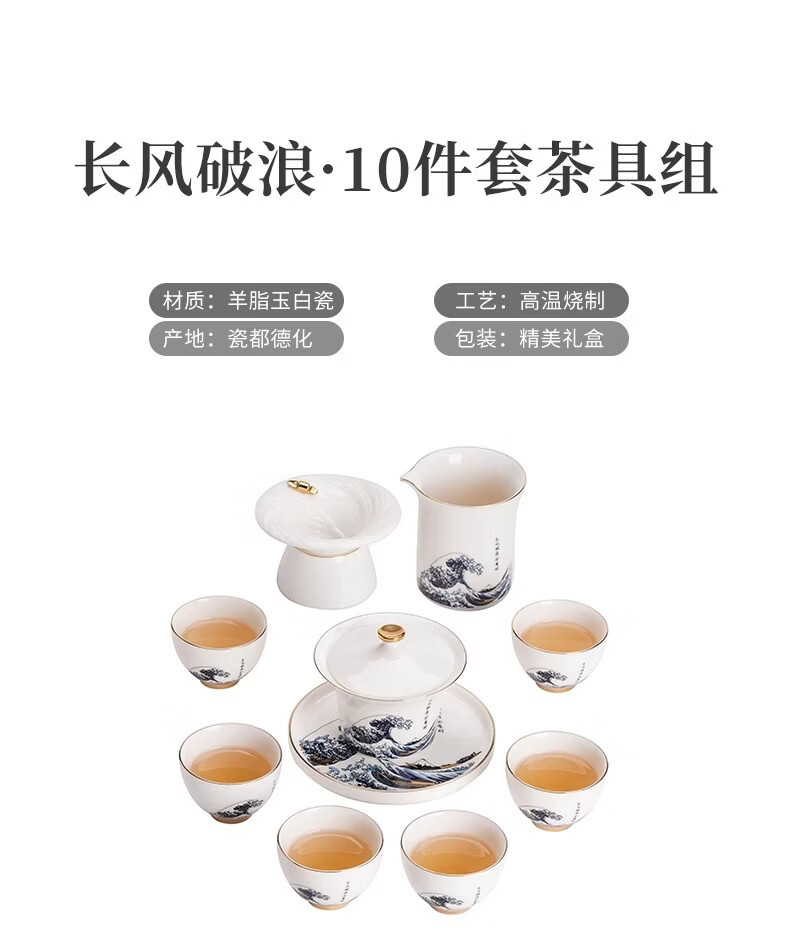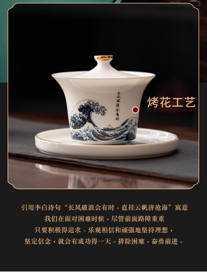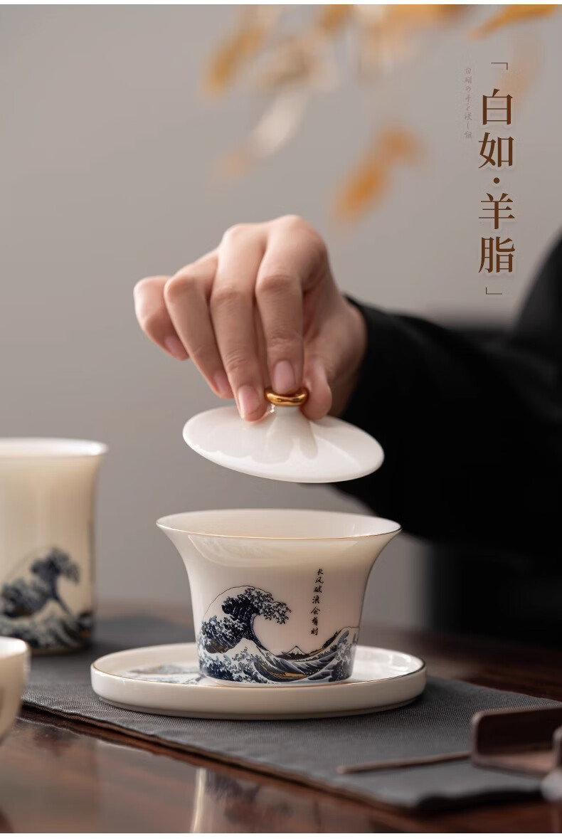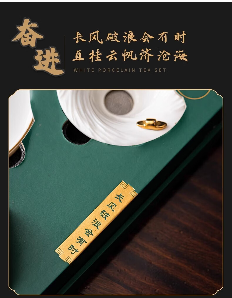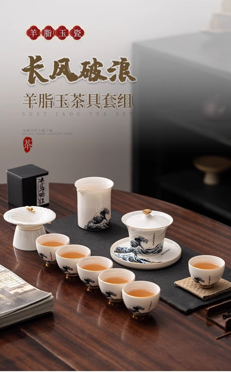 长风破浪会有时,直挂云帆济沧海;羊脂玉瓷轻奢套组,送礼佳品;温润如玉