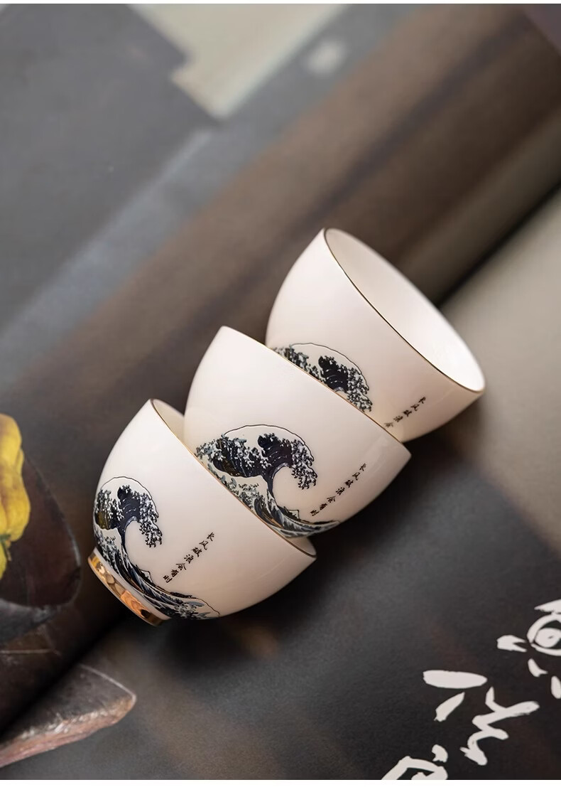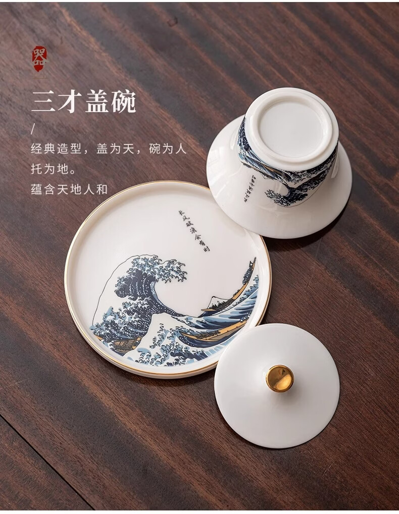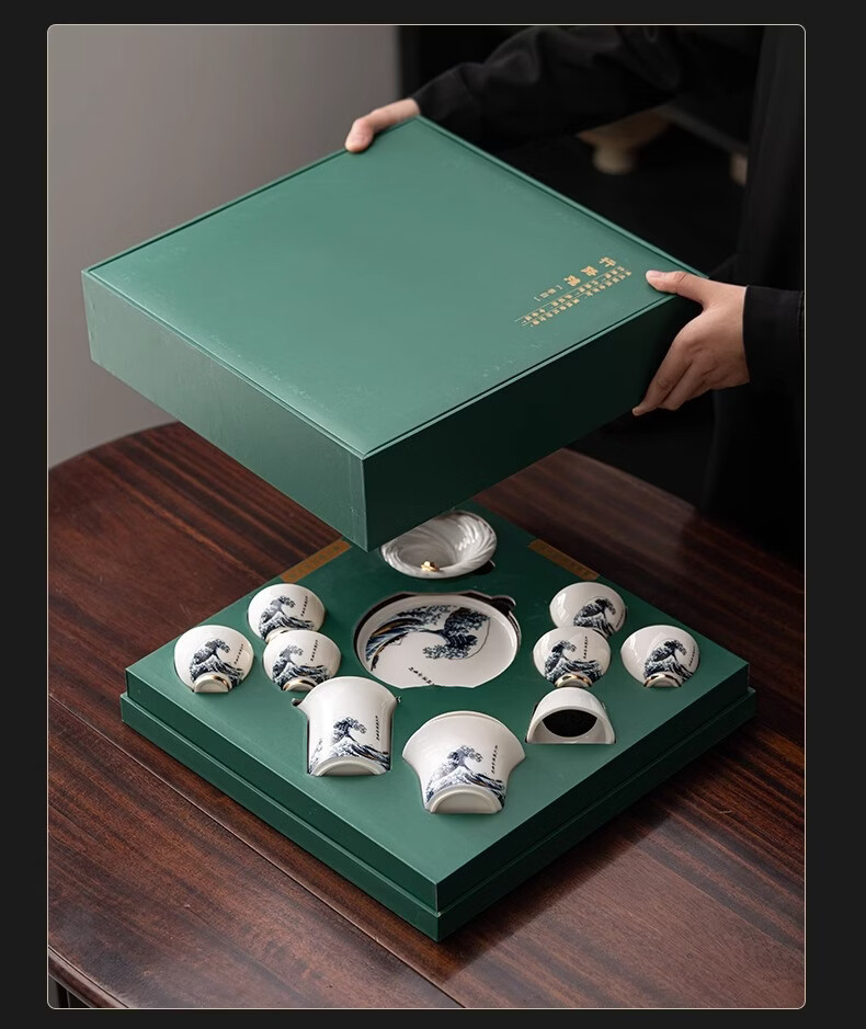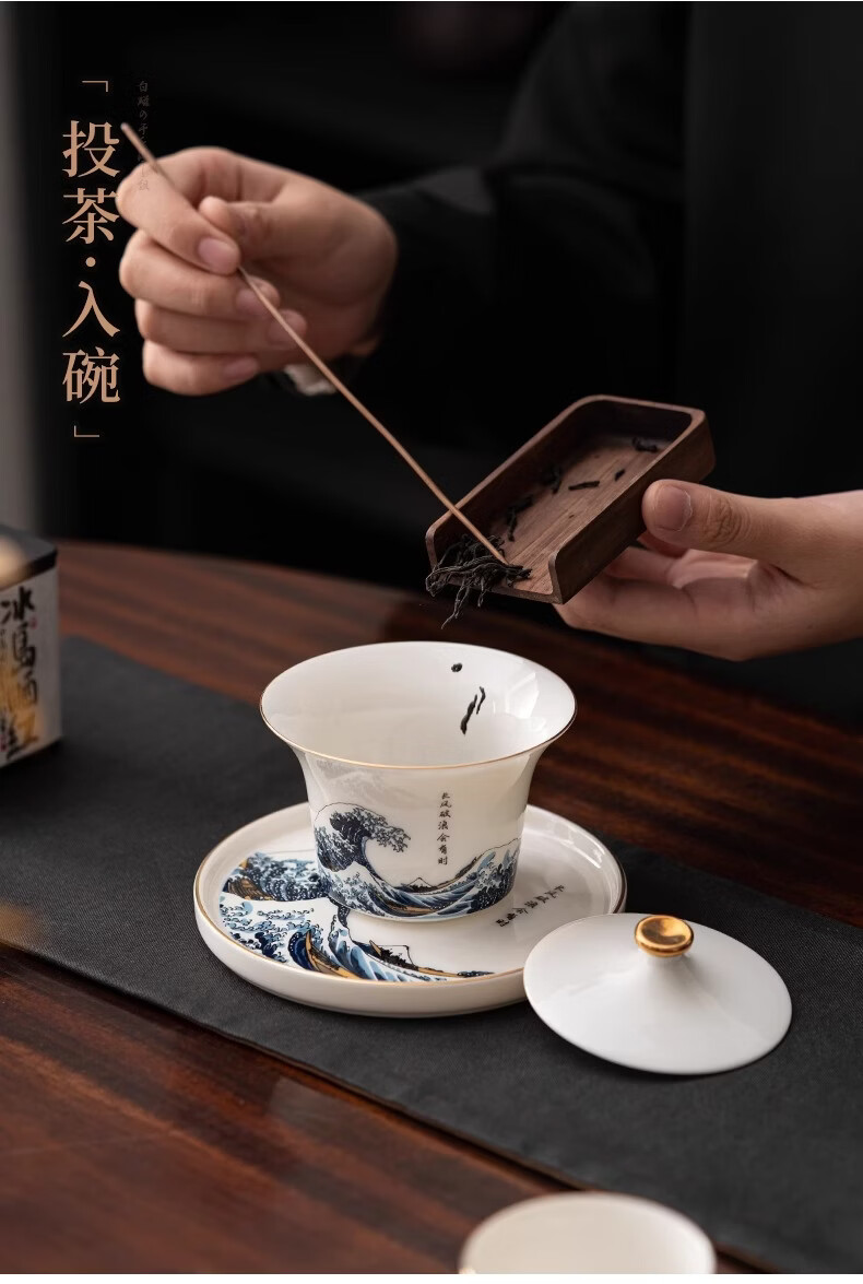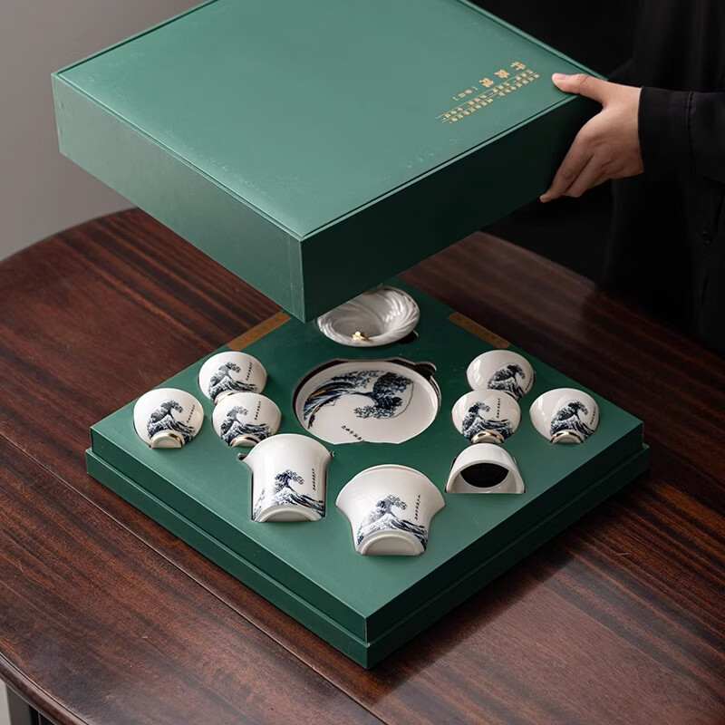 长风破浪会有时,直挂云帆济沧海;羊脂玉瓷轻奢套组,送礼佳品;温润如玉