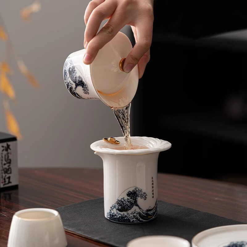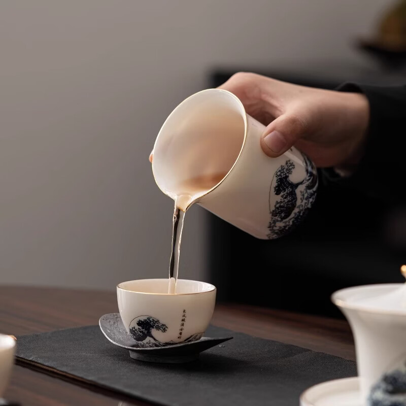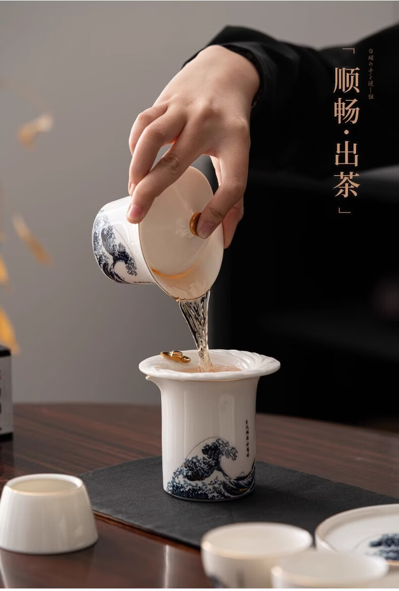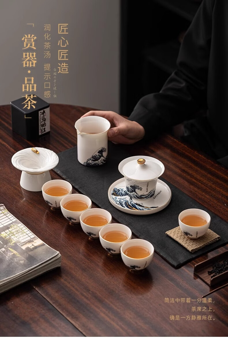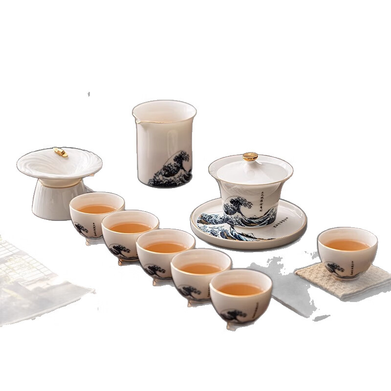易硕 羊脂玉海浪轻奢功夫茶具套装中式YS-269