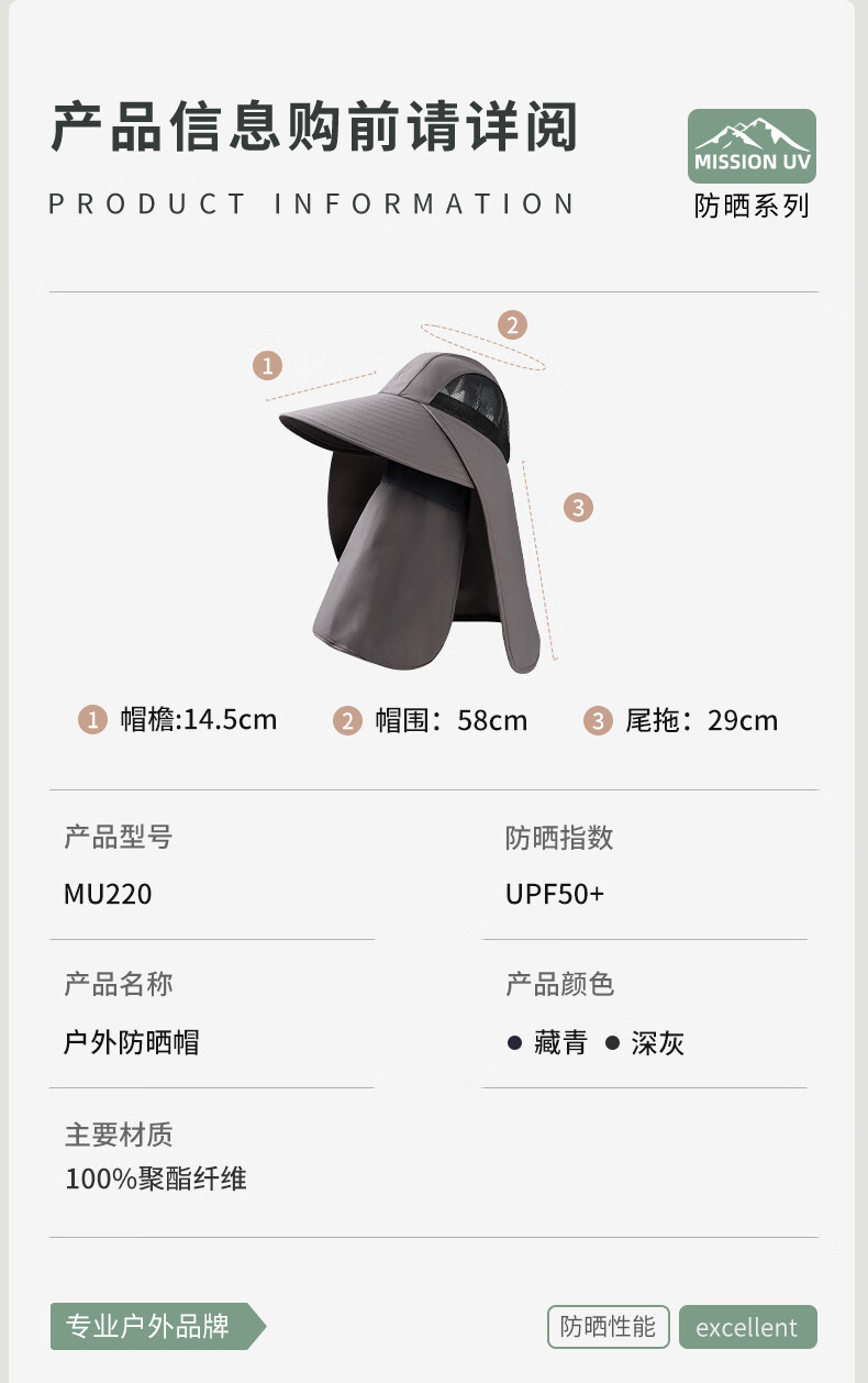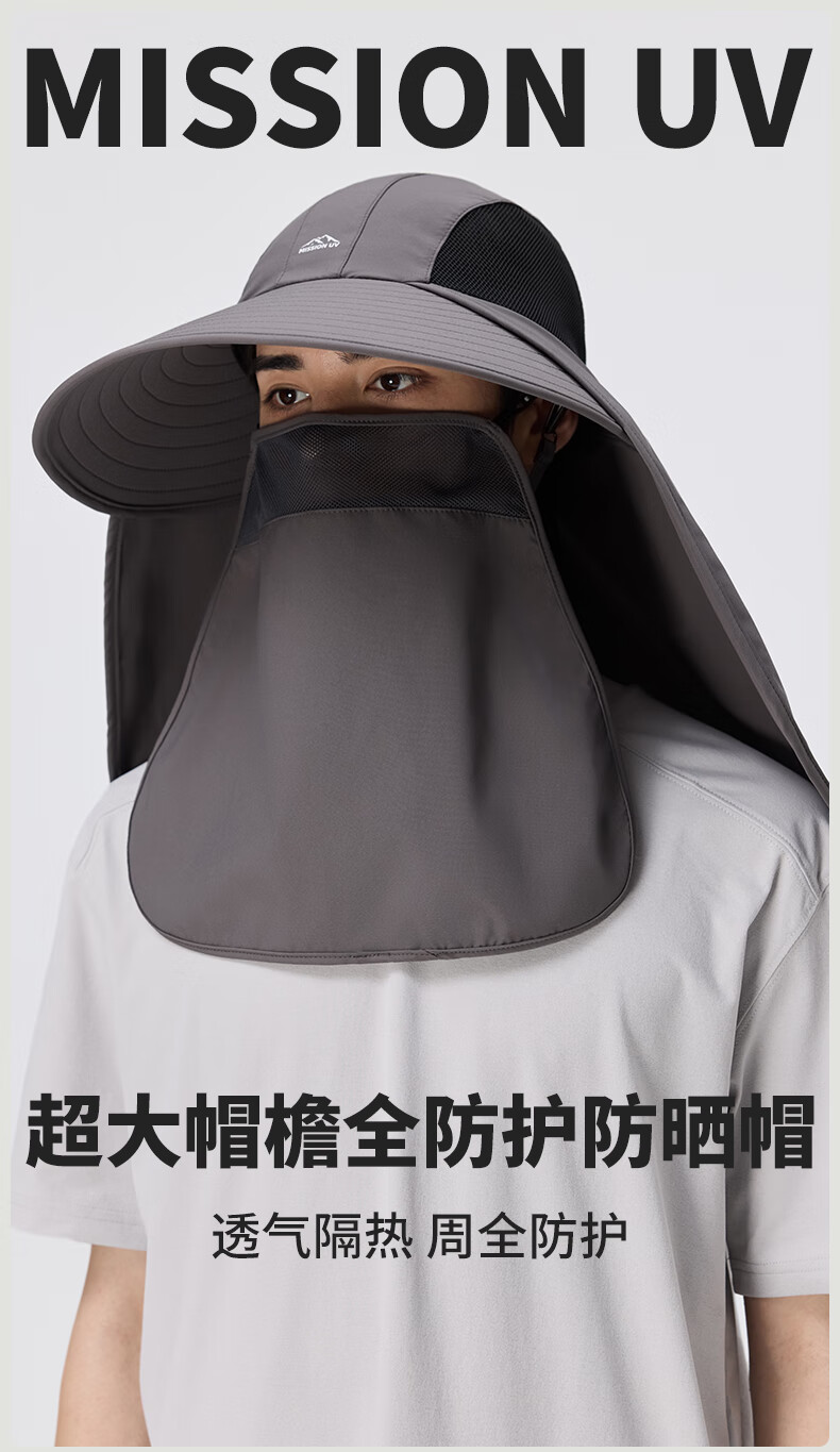MISSION UV 防晒帽男带面罩遮阳帽钓鱼渔夫帽MU272