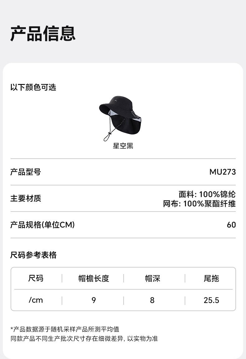 MISSION UV 防晒帽男士夏季户外徒步遮阳帽MU273