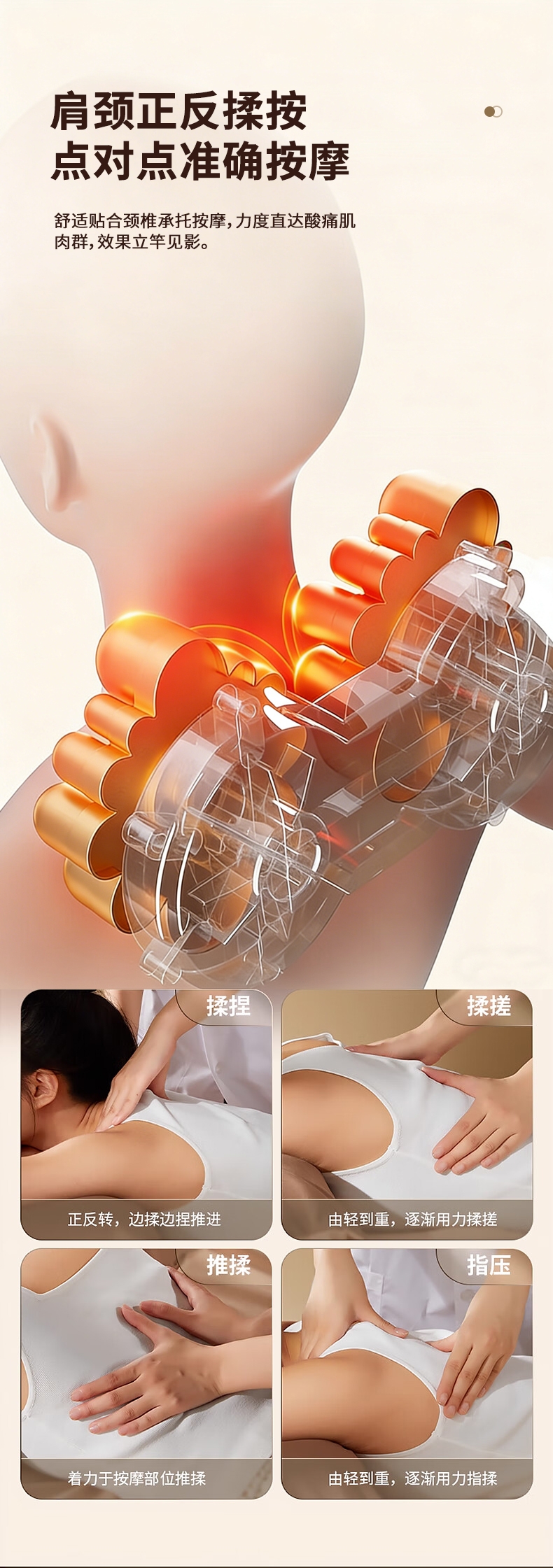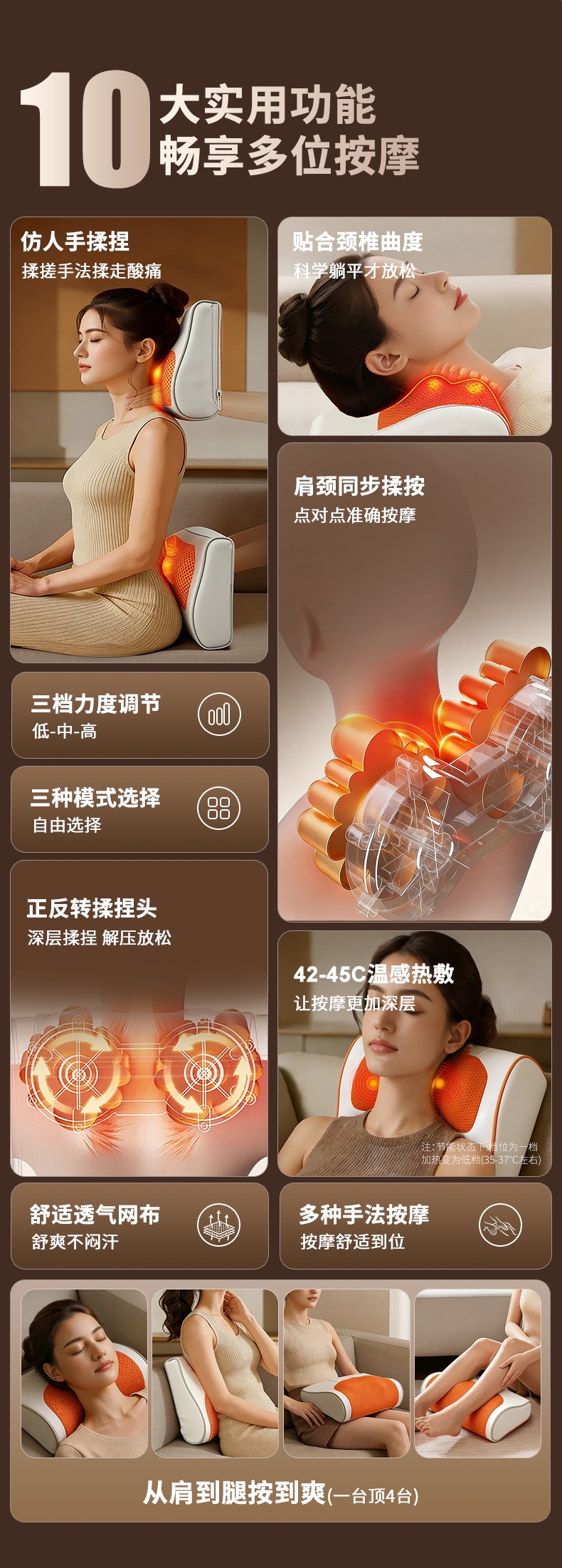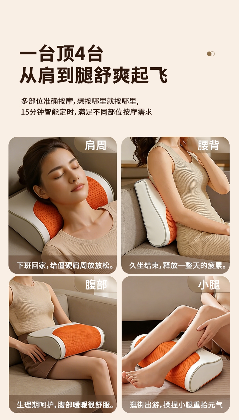 爱马仕橙经典配色;多部位使用,按摩颈椎腰部小腿等;充电款,精致不邋遢,随时随地都能用