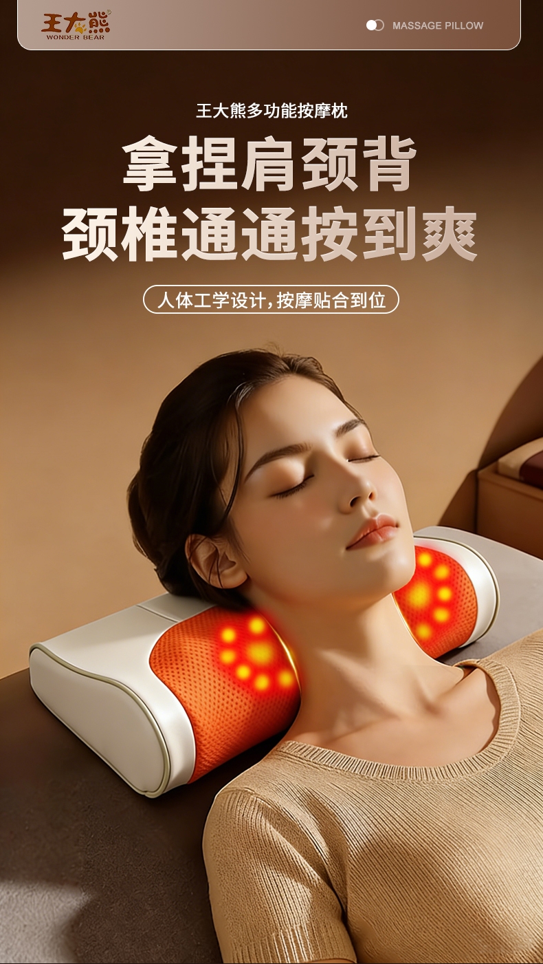 王大熊 颈椎按摩枕多功能颈椎腰背部按摩WD-J01