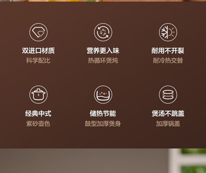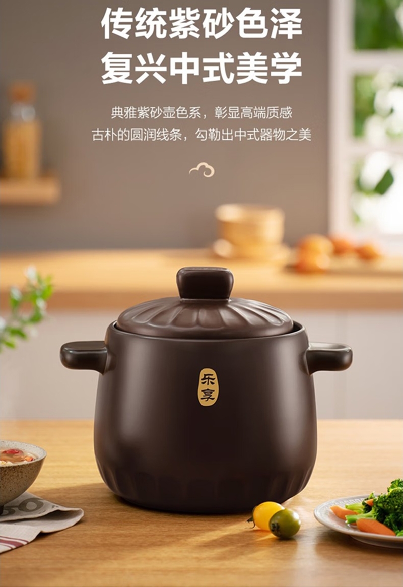传统紫砂色泽复兴中式美学典雅紫砂壶色系;彰显高端质感 古朴的圆润线条,勾勒出中式器物之美;两大进口材质抗磨防裂不娇气;耐430°C温差跨越冷热交替不开裂