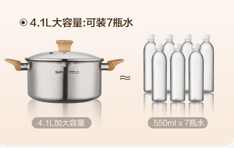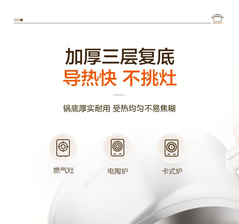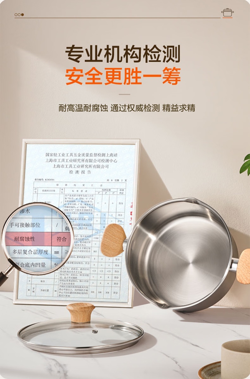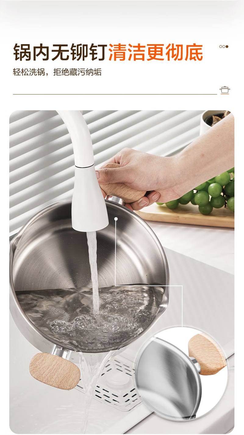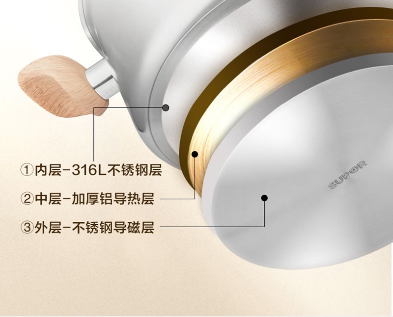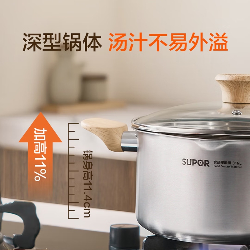 316L不锈钢汤锅守护健康每一餐真无涂层真健康;婴童食品接触用不锈钢宝宝入口更安心;一体成型锅身坚固耐用不易变形