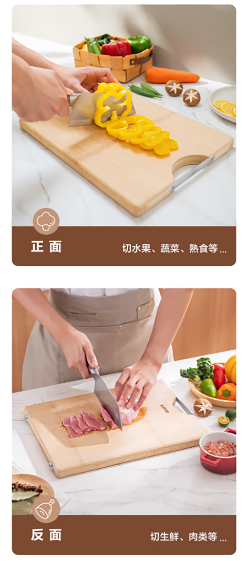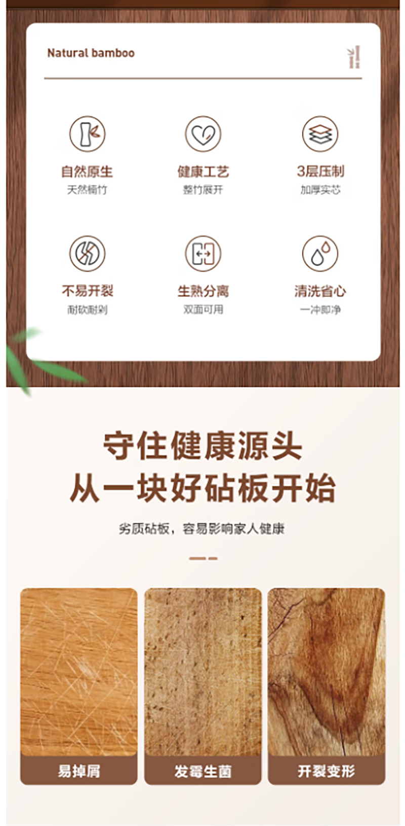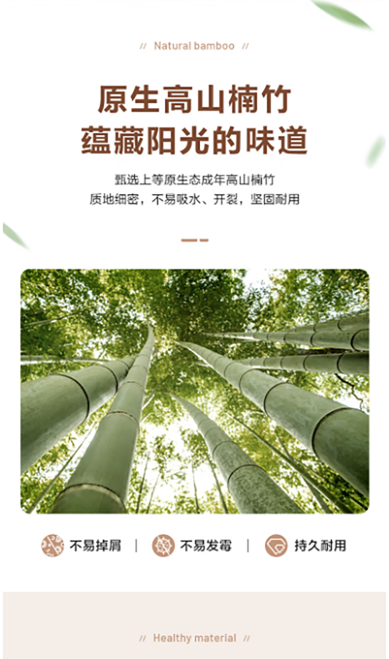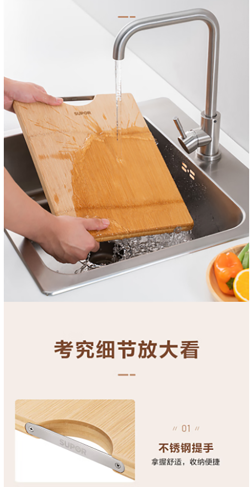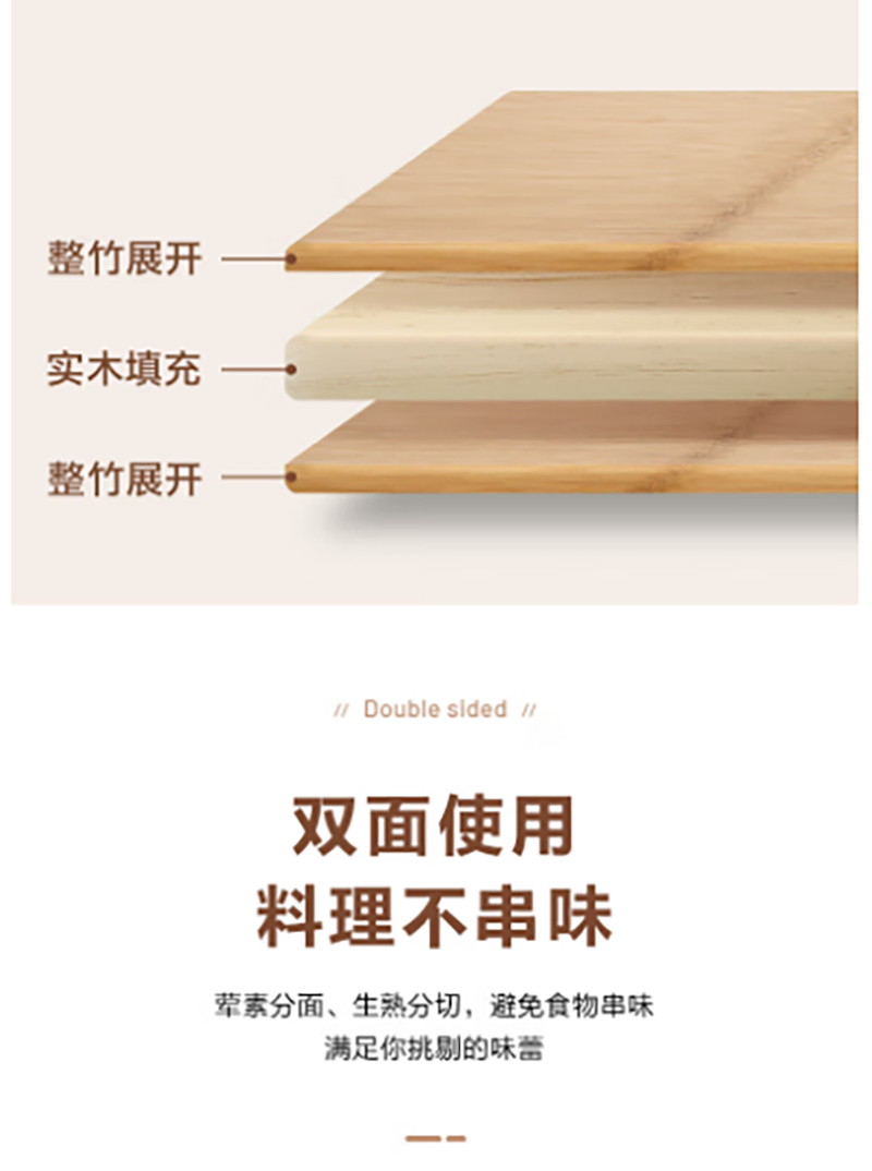 甄选上等原生态成年高山楠竹质地细密;不易吸水、开裂,坚固耐用;天然楠竹整张展开制作完整无拼接每块砧板皆为匠心之作;双面便用料理不串味荤素分面、生熟分切