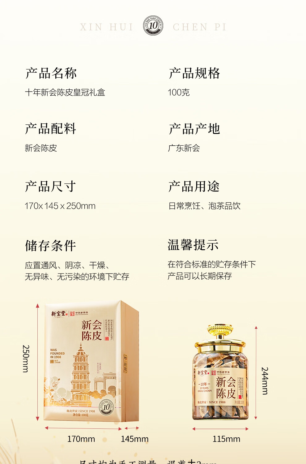 新宝堂 十年新会陈皮皇冠礼盒100克