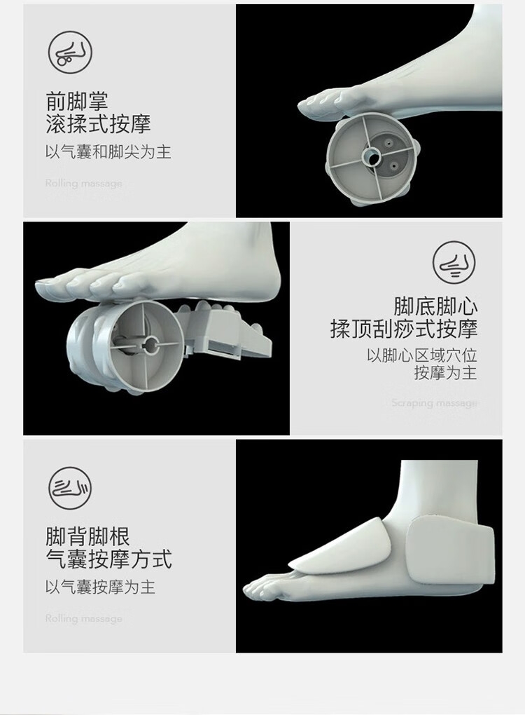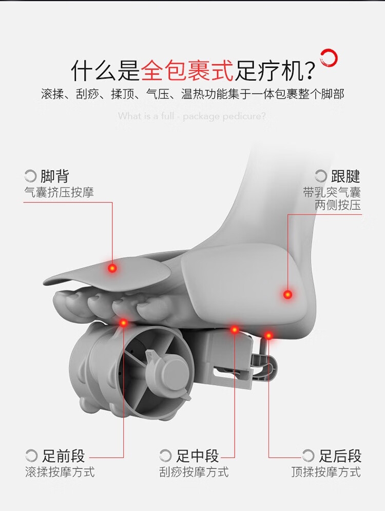 宏太智能足疗机 ,360全包裹足穴按摩;包裹式按摩/脚背气囊夹揉, 集五大按摩手法技艺高;按 、压 、捏 、推 、揉 、舒适全面按摩