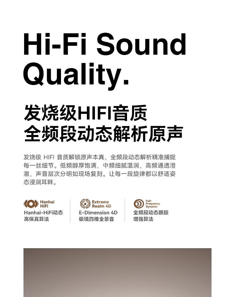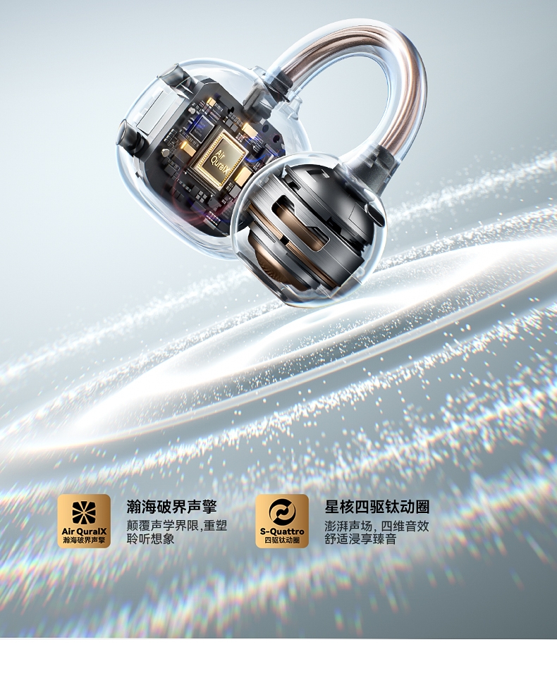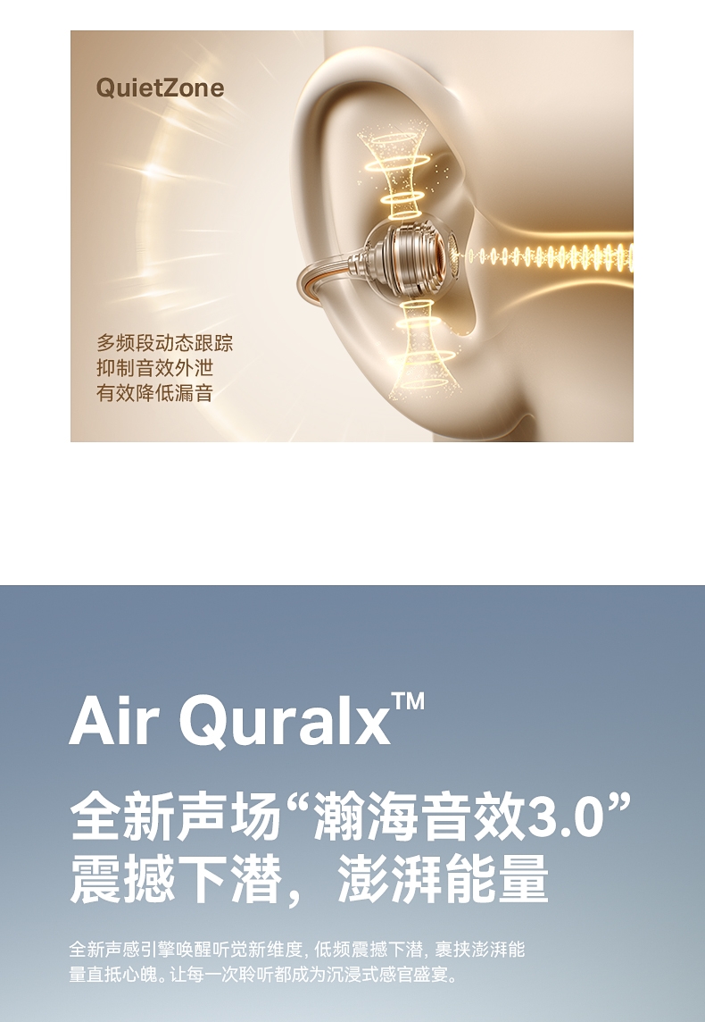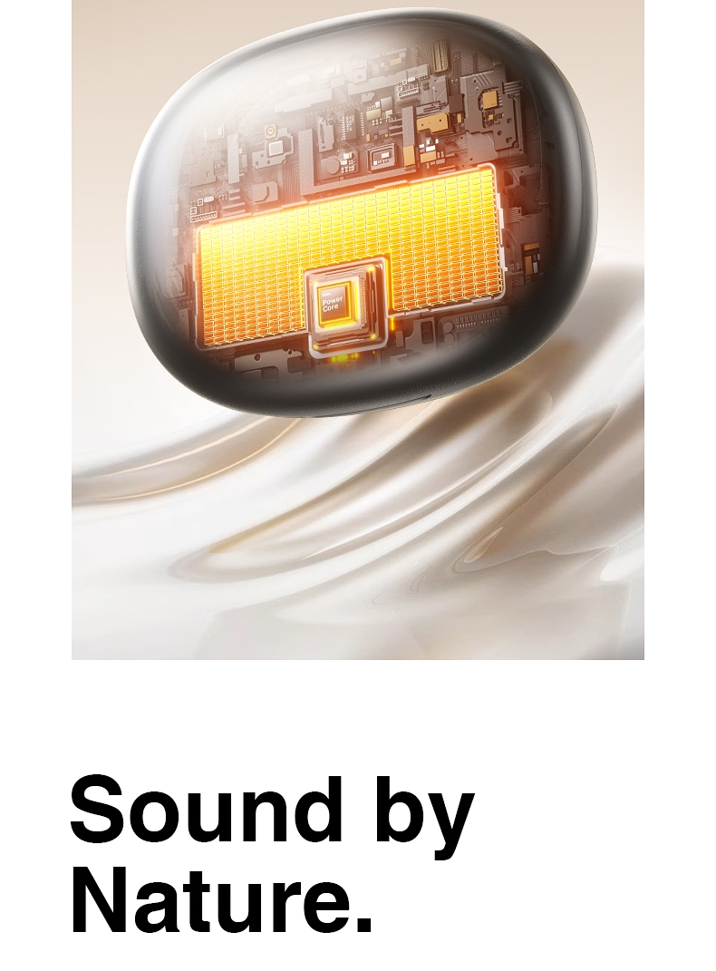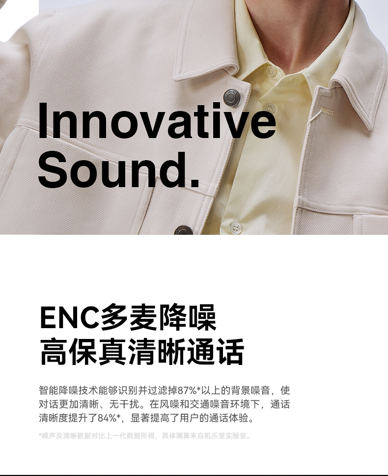 极低功耗即可输出清晰响亮的声音;球型环绕全景声场 高频靓丽 听感干净 不刺耳 ;AI-ENC通话降噪 人声清晰 隔绝环境音