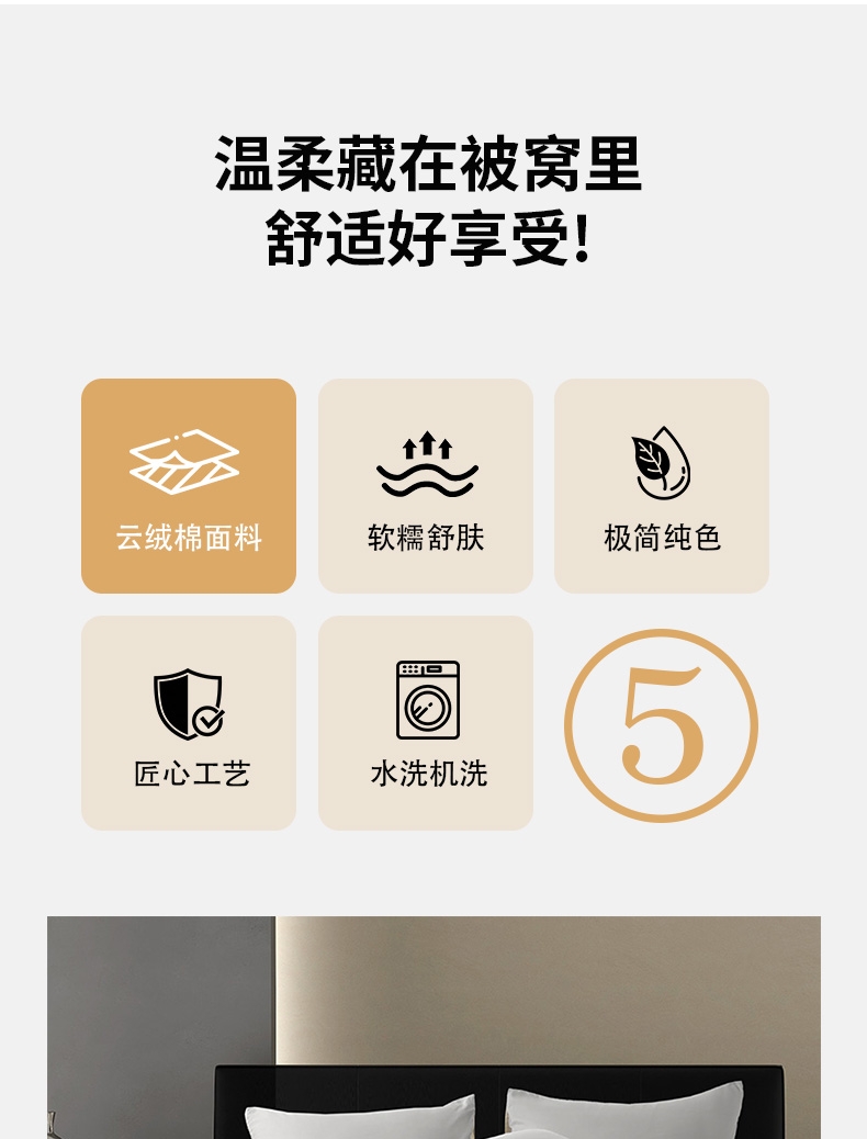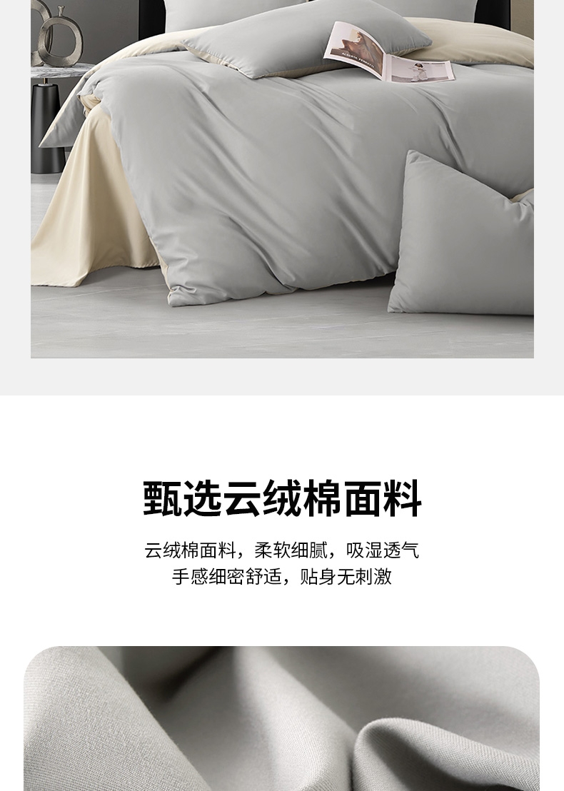 采用独家“云绒棉”面料,通过精密磨毛工艺;将100%聚酯纤维处理出堪比高端针织棉的软糯质感;触感柔滑细腻,贴身瞬间如坠云端