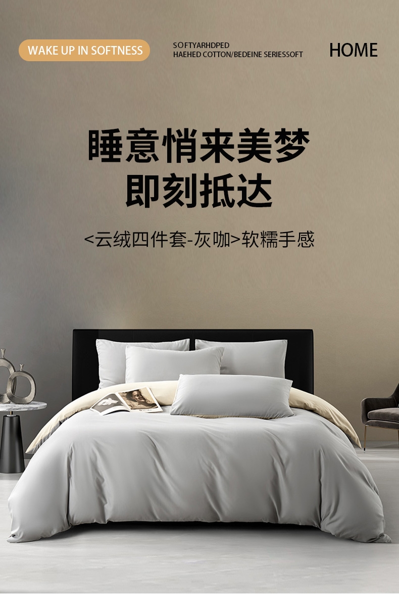 唐纳家纺 云绒四件套灰咖TN-KTS25053