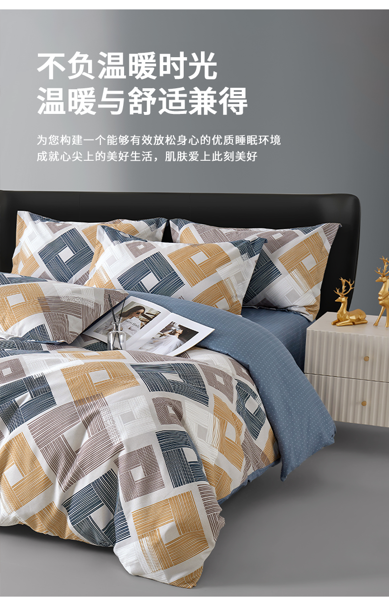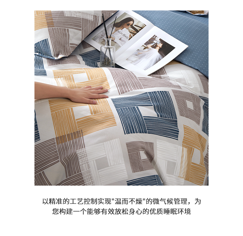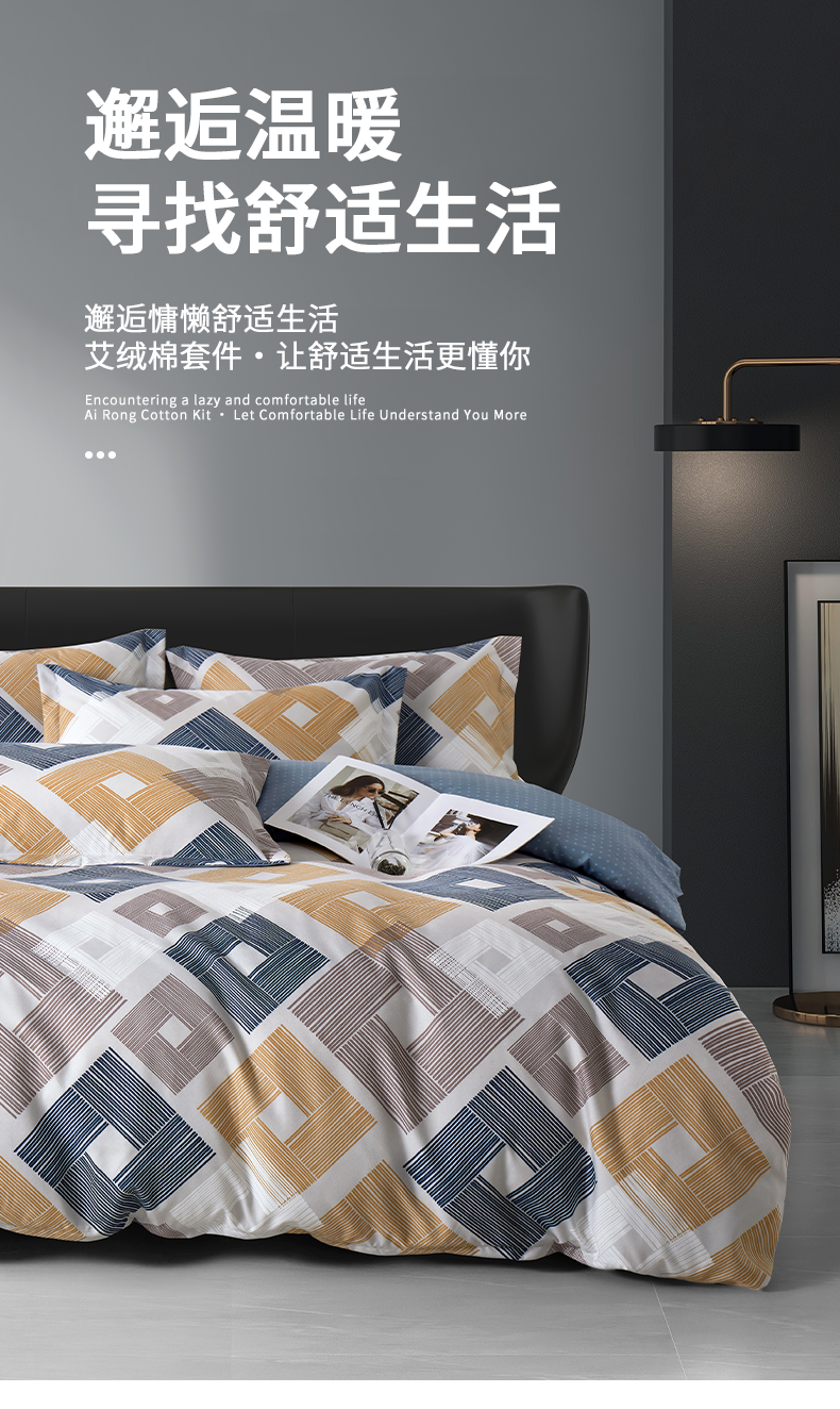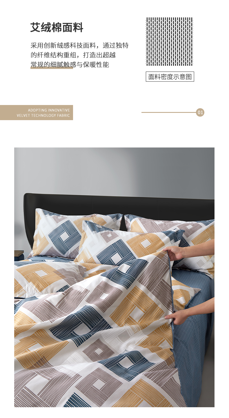 采用创新绒感科技面料,通过独特的纤维结构重组;打造出超越常规的细腻触感与保暖性能;为您构建一个能够有效放松身心的优质睡眠环境。