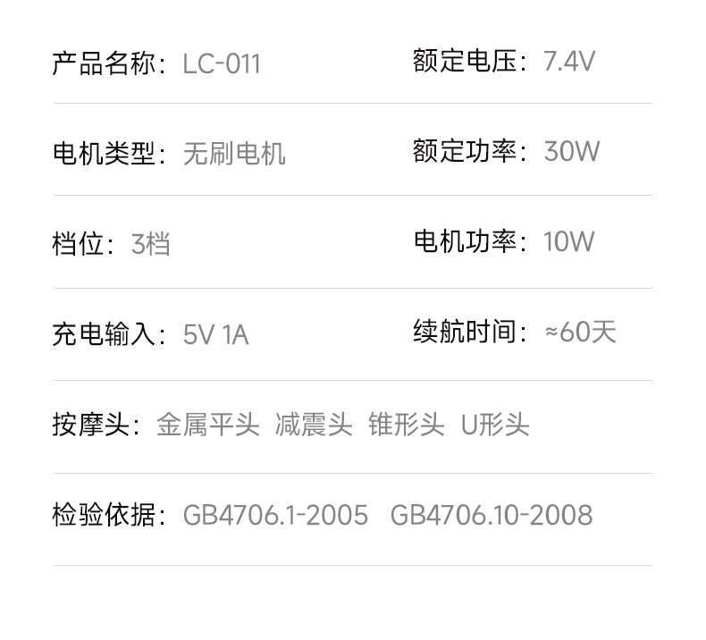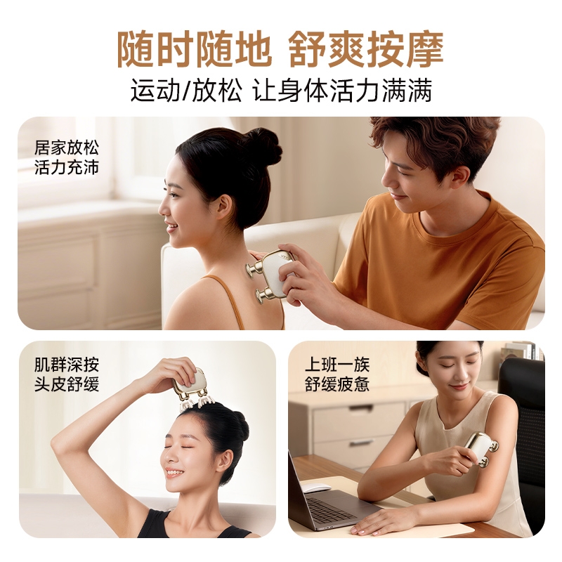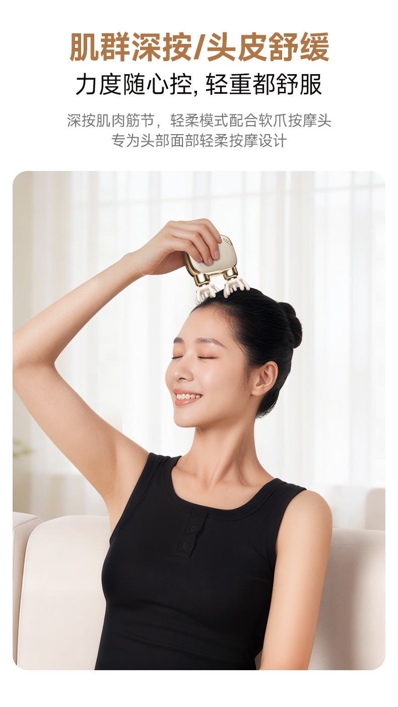 肌群深按/头皮舒缓 力度随心控,轻重都舒服;多种按摩模式满足不同按摩需求;持久放松不断电续航力爆棚