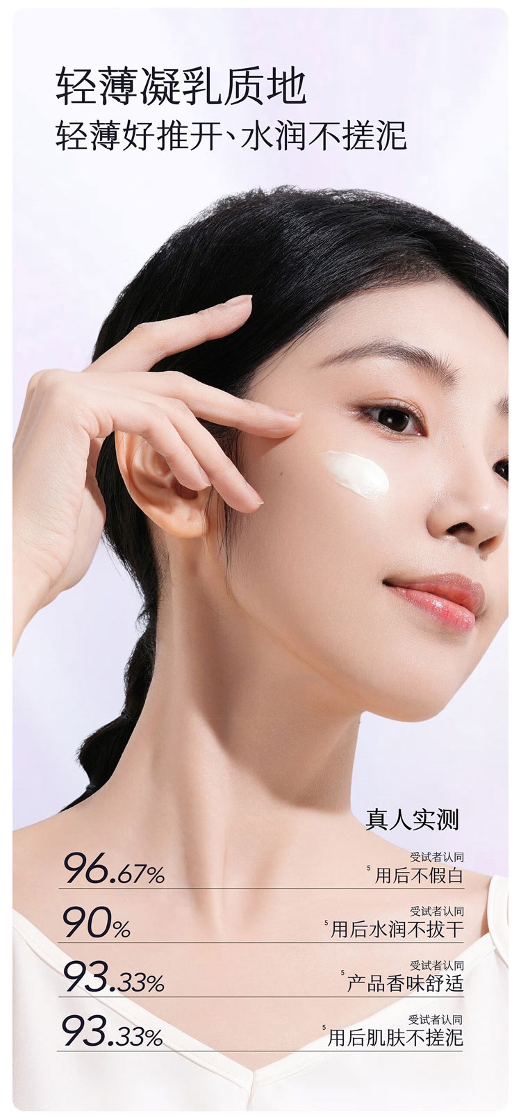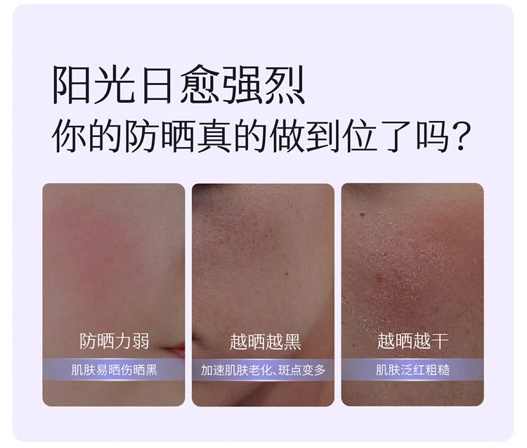 专研“智感”耐晒技术360°超光谱防晒无死角;轻薄凝乳质地,轻薄好推开;精准抑黑 层层美白,不止防晒更是养白精华