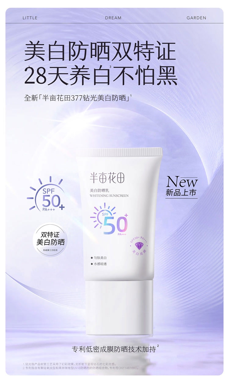 配置清单:半亩花田美白防晒乳30g*2支