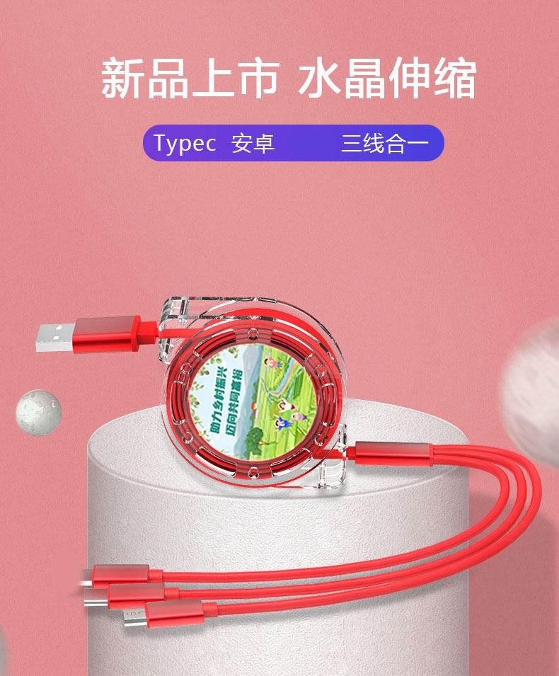 财滚滚 一拖三拉伸数据线乡村主题