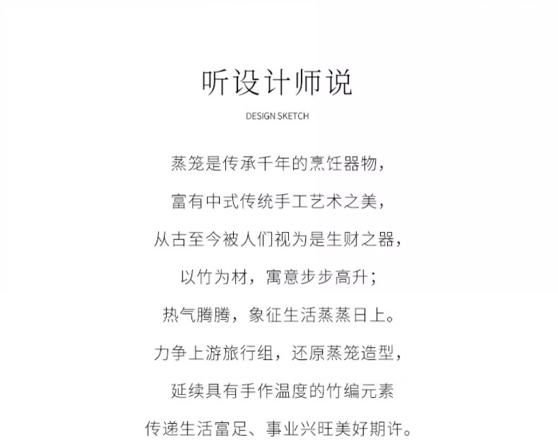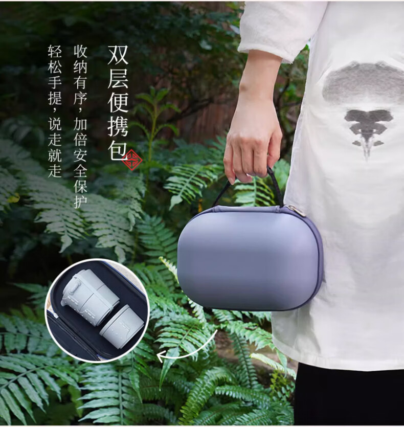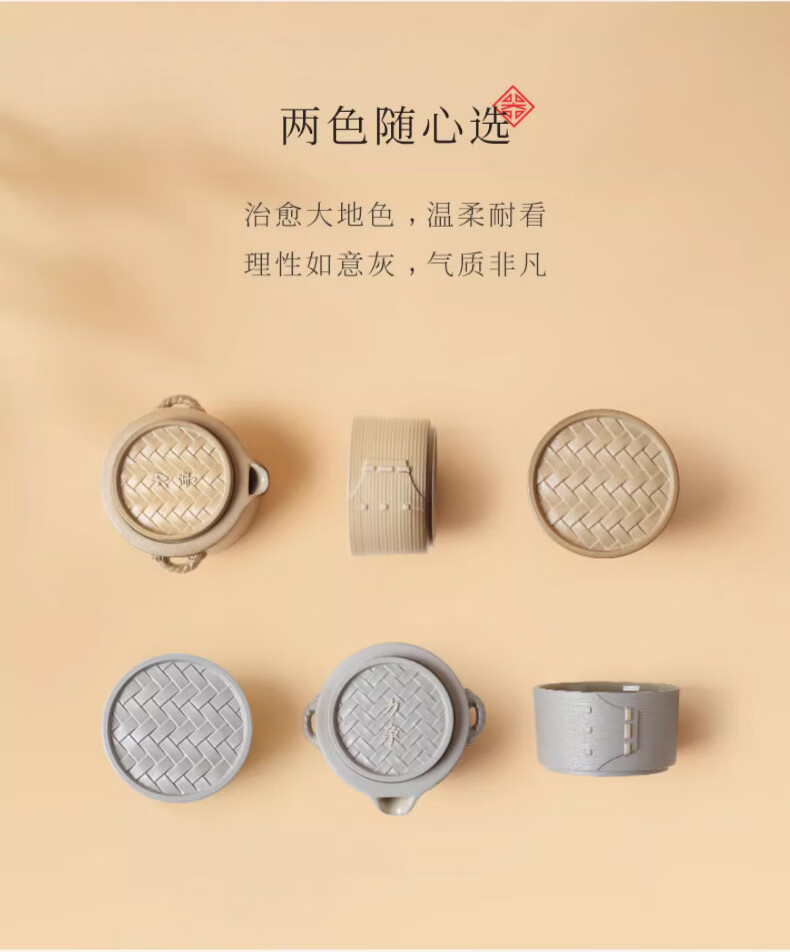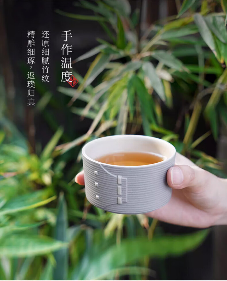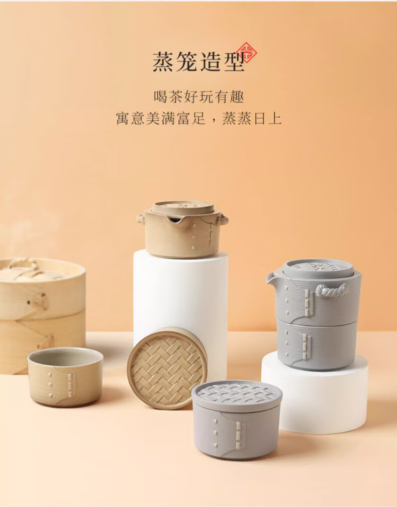 还原经典蒸笼造型,中式艺术之美;手雕竹编纹路,返璞归真;便携包可将茶器有序收纳