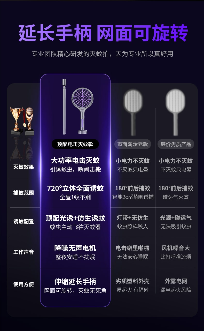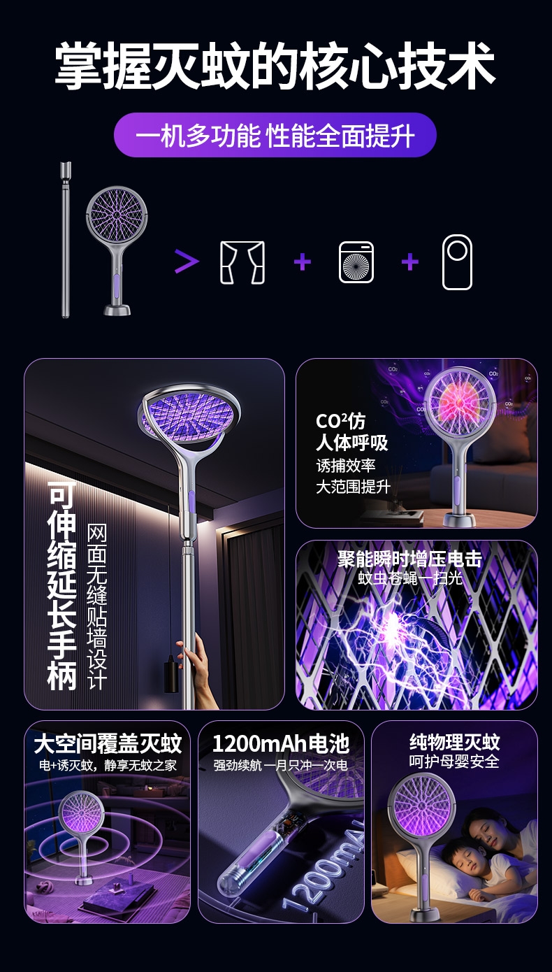 收纳底座延长手柄;诱蚊强+安全物理灭蚊;办公室家用户外露营多场景可用