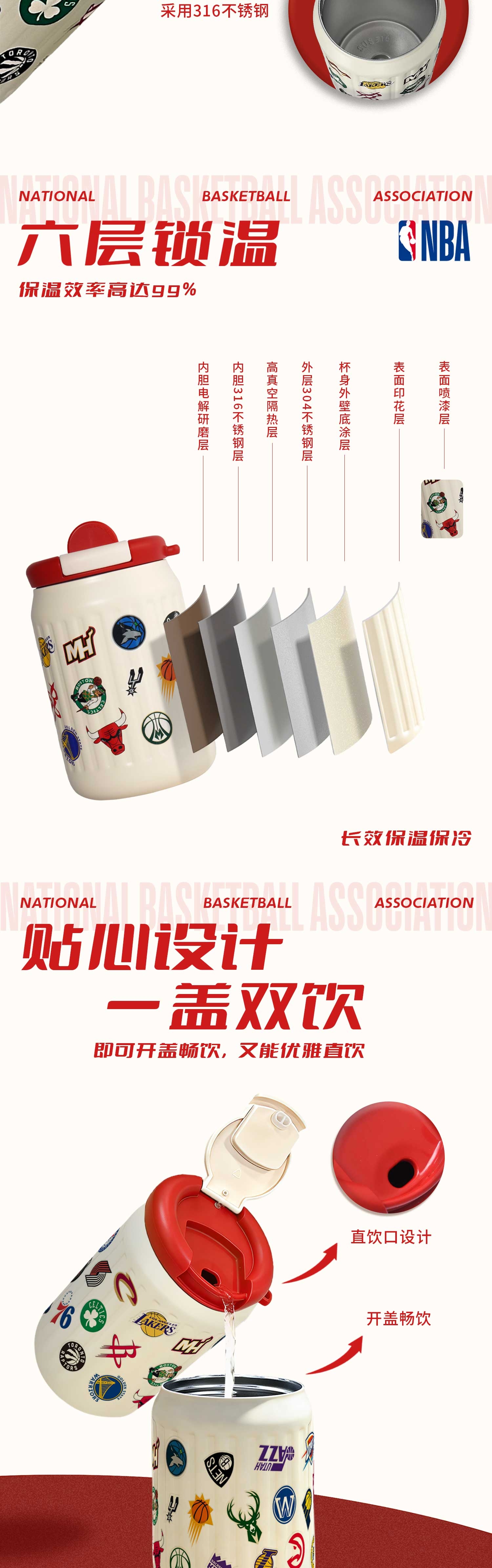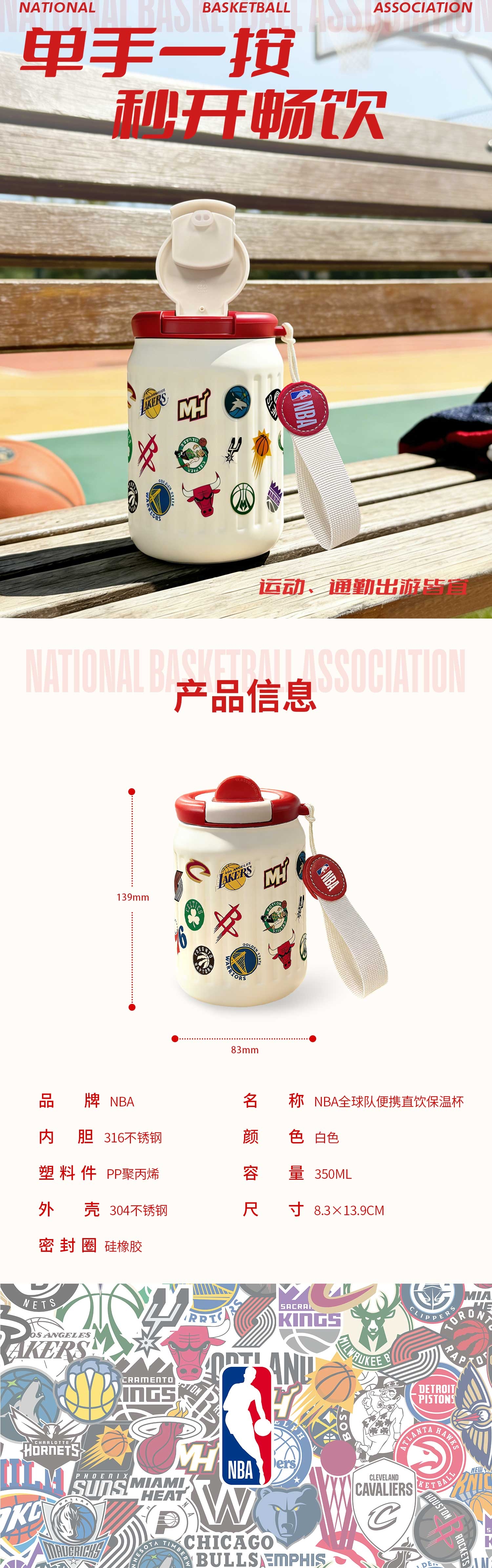 NBA 全球队便携直饮保温杯NBA-QQDBXZYBWB-350