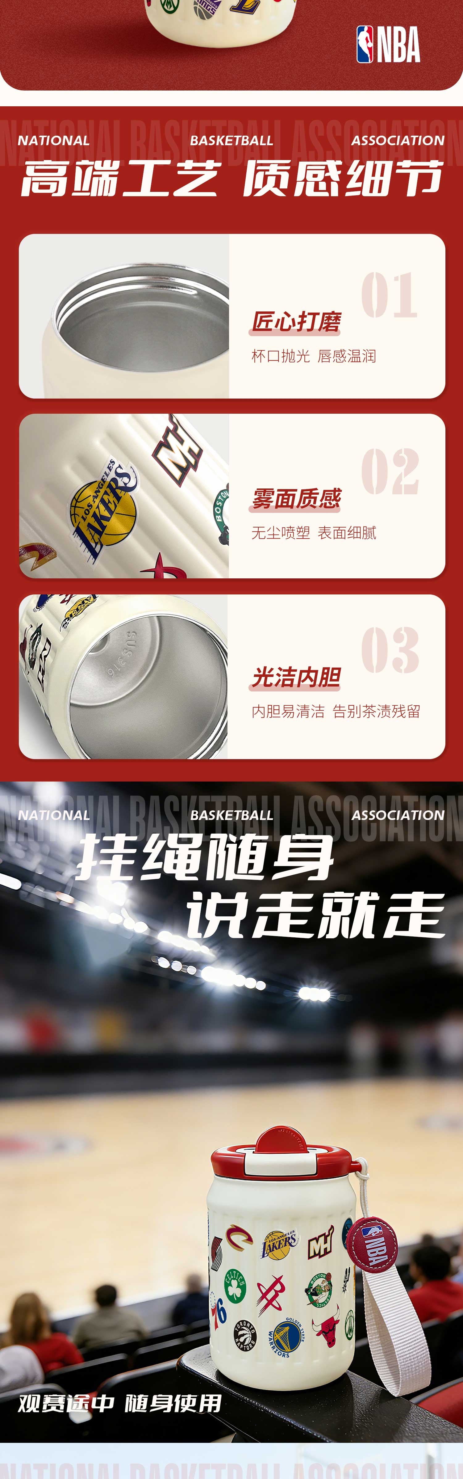 轻便携,补水不发愁;密封防漏 + 细节贴心:翻盖式杯盖一按即开;篮球迷专属潮饮装备,把篮球情怀融入日常