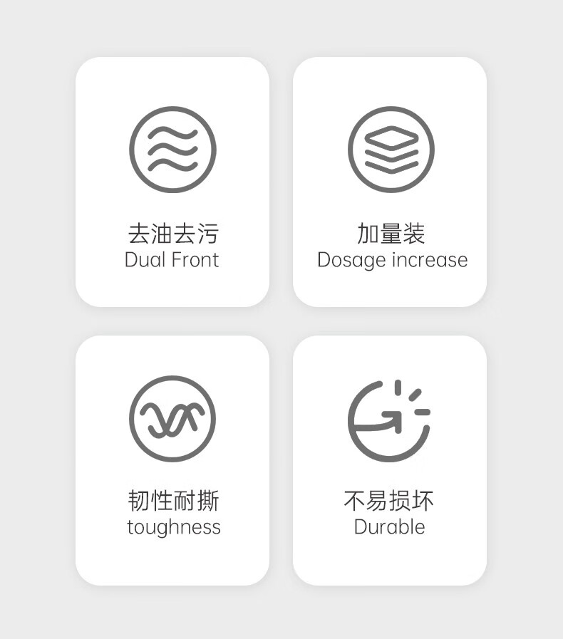 去油去污,加量装;韧性耐撕,不易损坏;大珍珠凹凸颗粒,加强去污力度