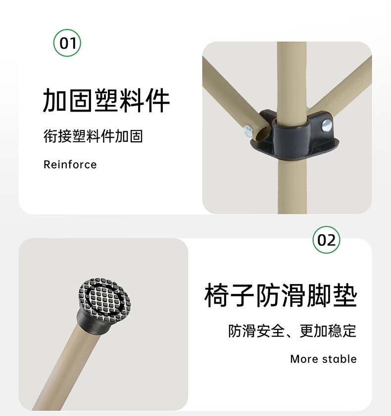 椅子防滑脚垫 ,防滑安全、更加稳定;精密面板卡扣 ,更结实、更精密;加固塑料件,衔接塑料件加固