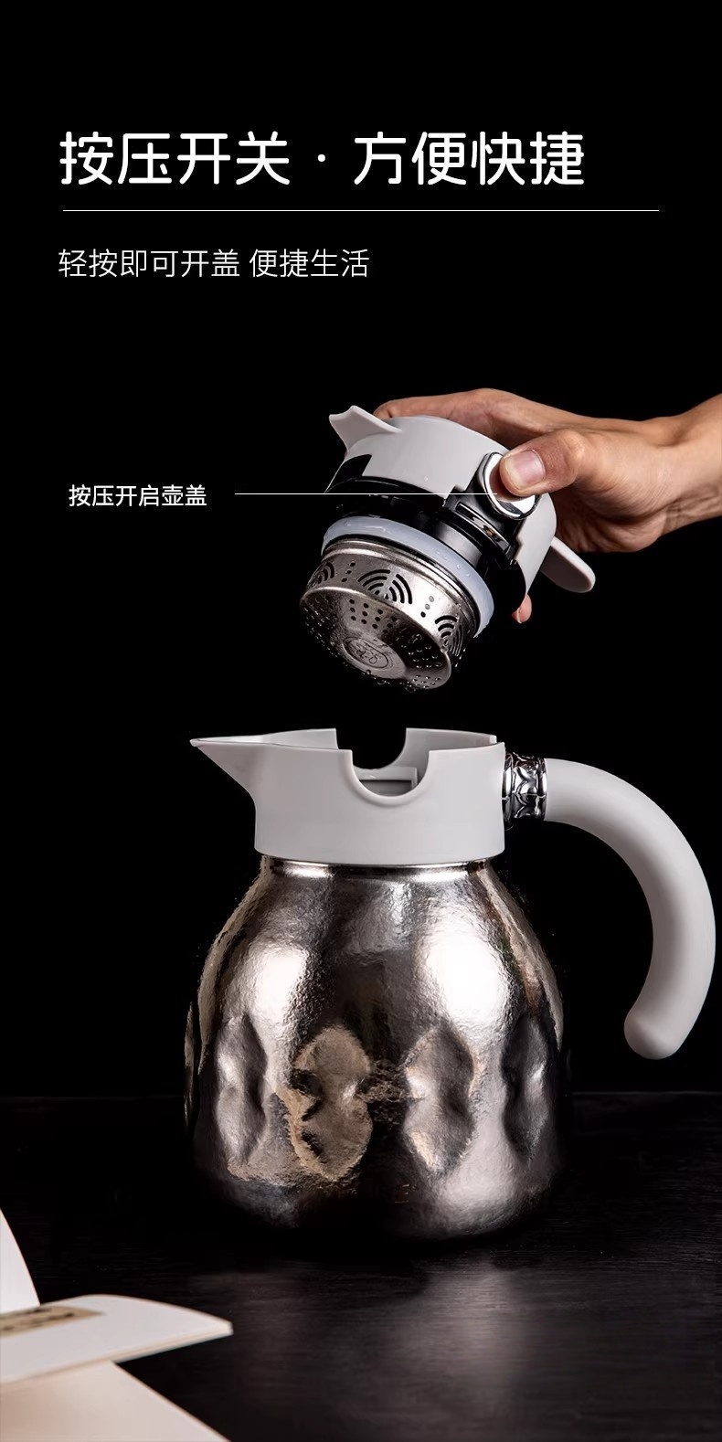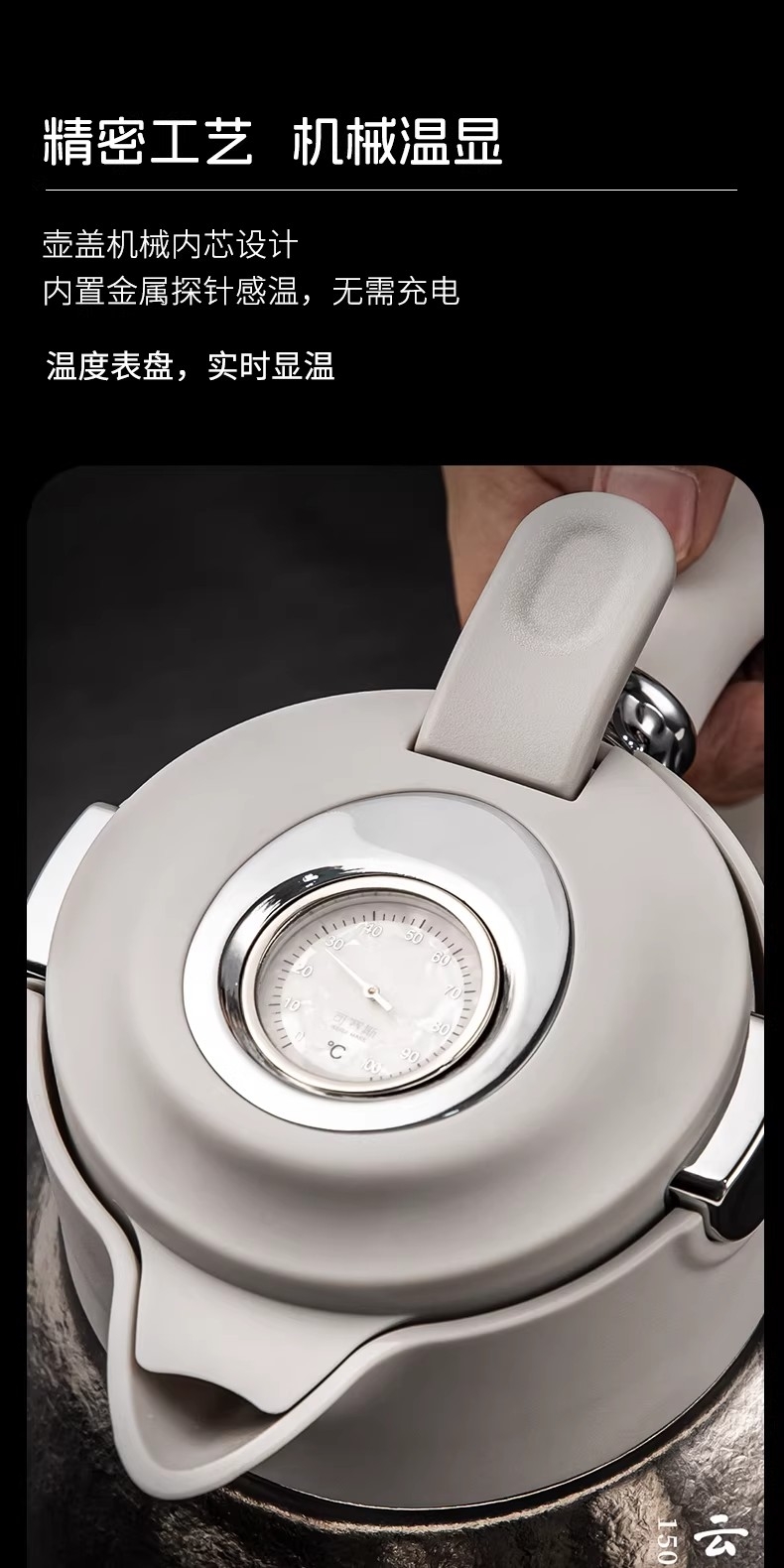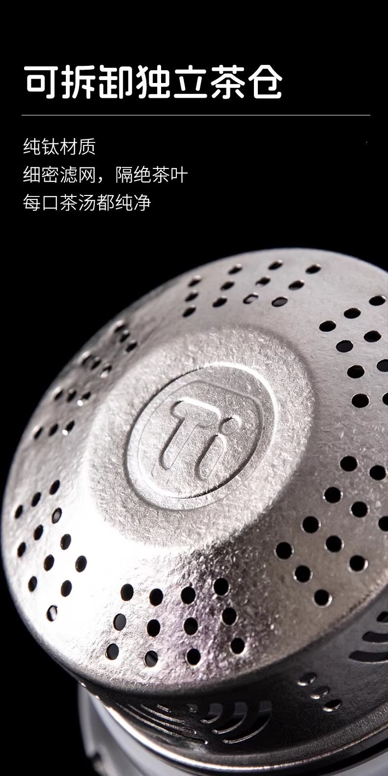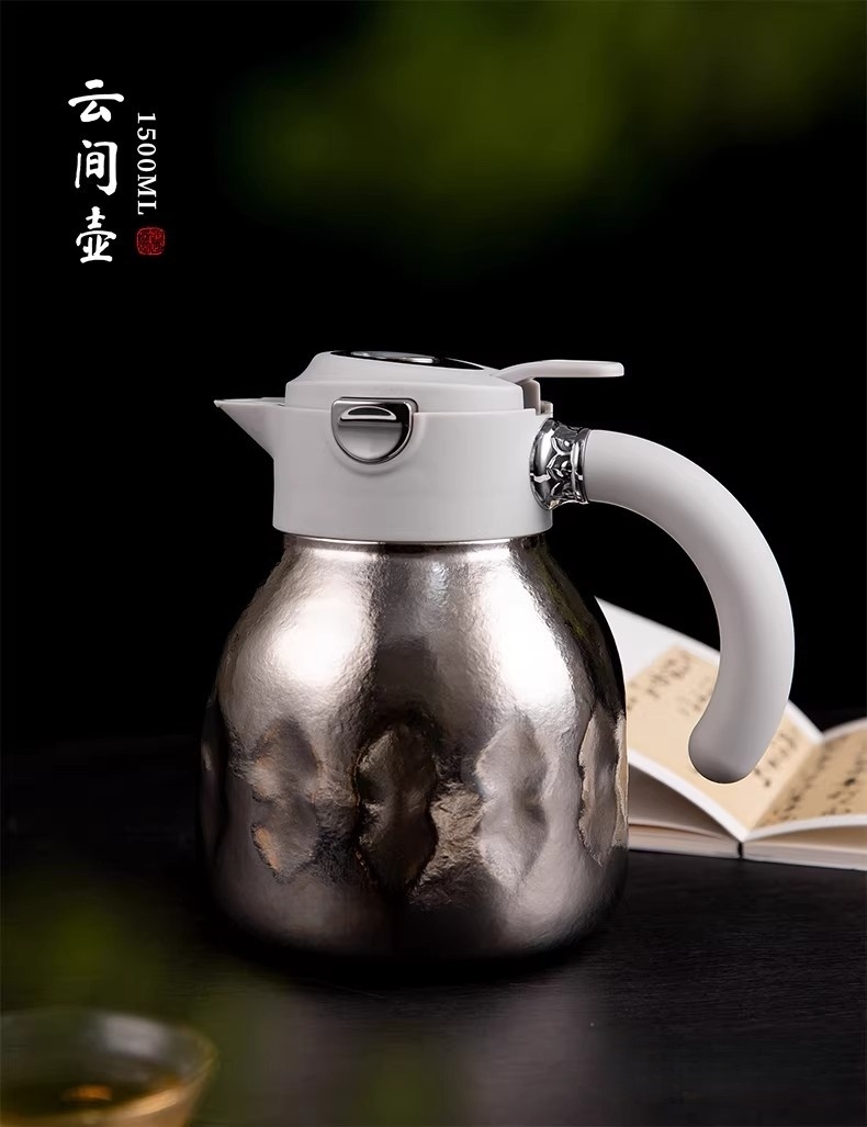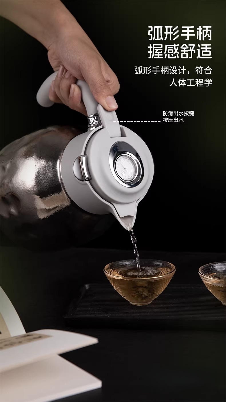 1500ml大容量,可一人独享整天 可多人分享畅饮;纯钛内胆·健康养生 无味|无害|抑菌|保鲜;精密工艺 机械温显 壶盖机械内芯设计 内置金属探针;按压开关·方便快捷 轻按即可开盖便捷生活;可拆卸独立茶仓 纯钛材质 细密滤网,隔绝茶叶