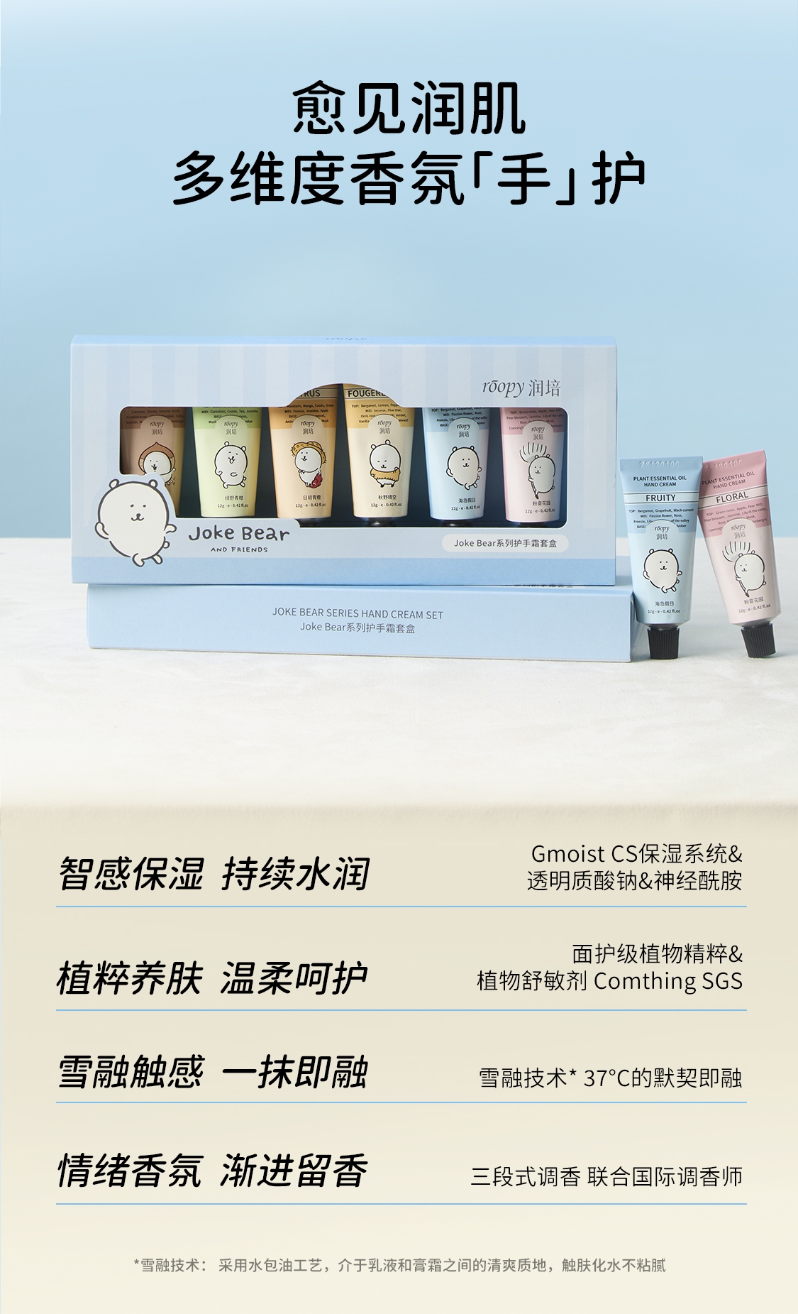 高颜值联名设计,与自嘲熊的联名包装充满趣味;优质香氛体验,采用高品质调香;质地轻盈不油腻,奶油乳霜质地一抹化水,吸收速度极快