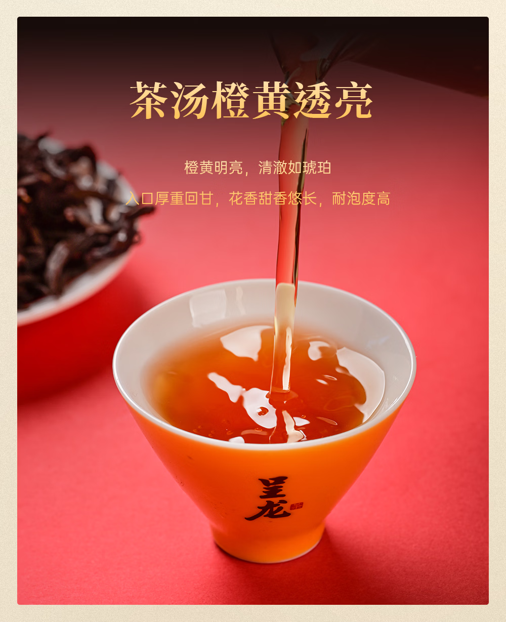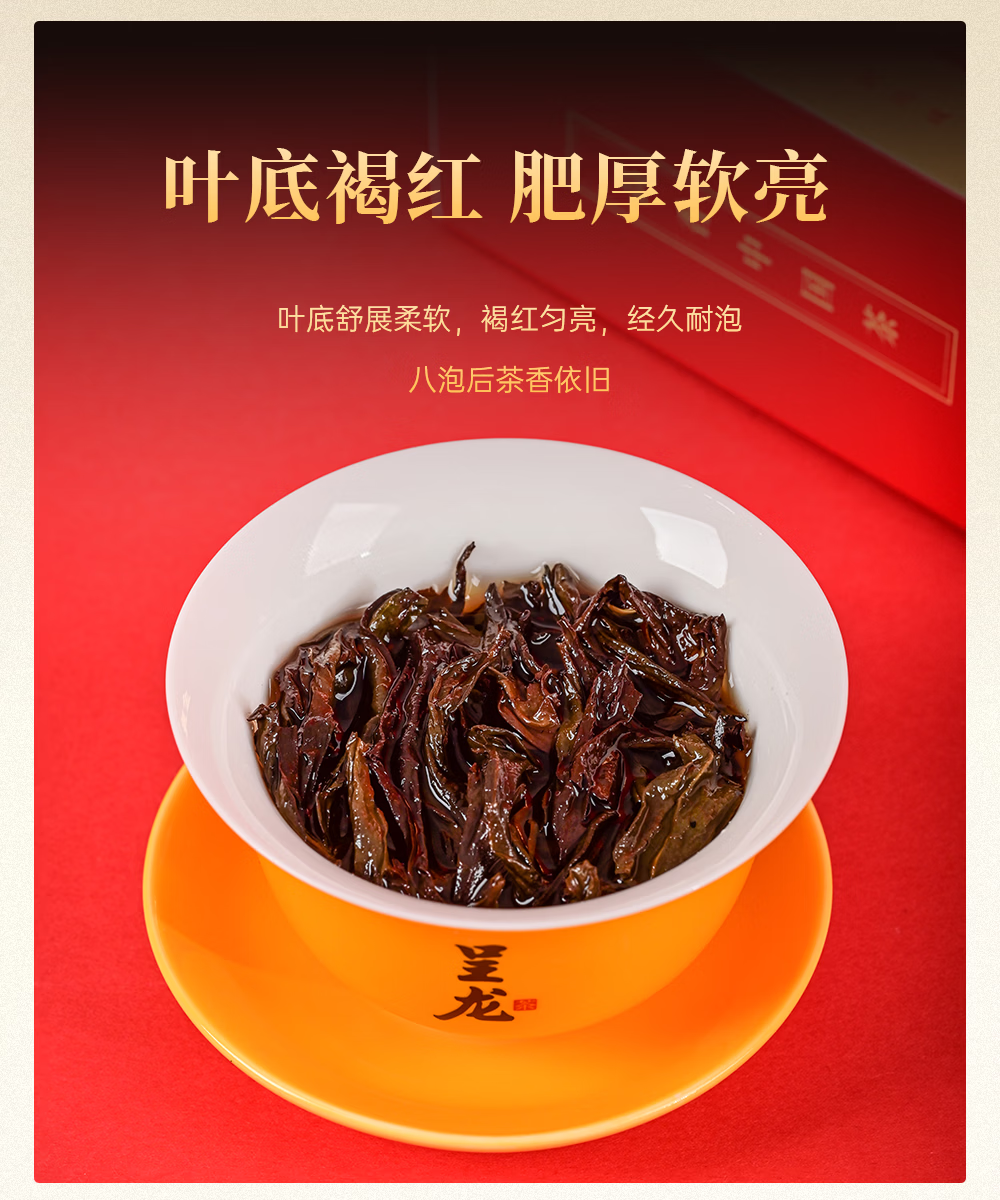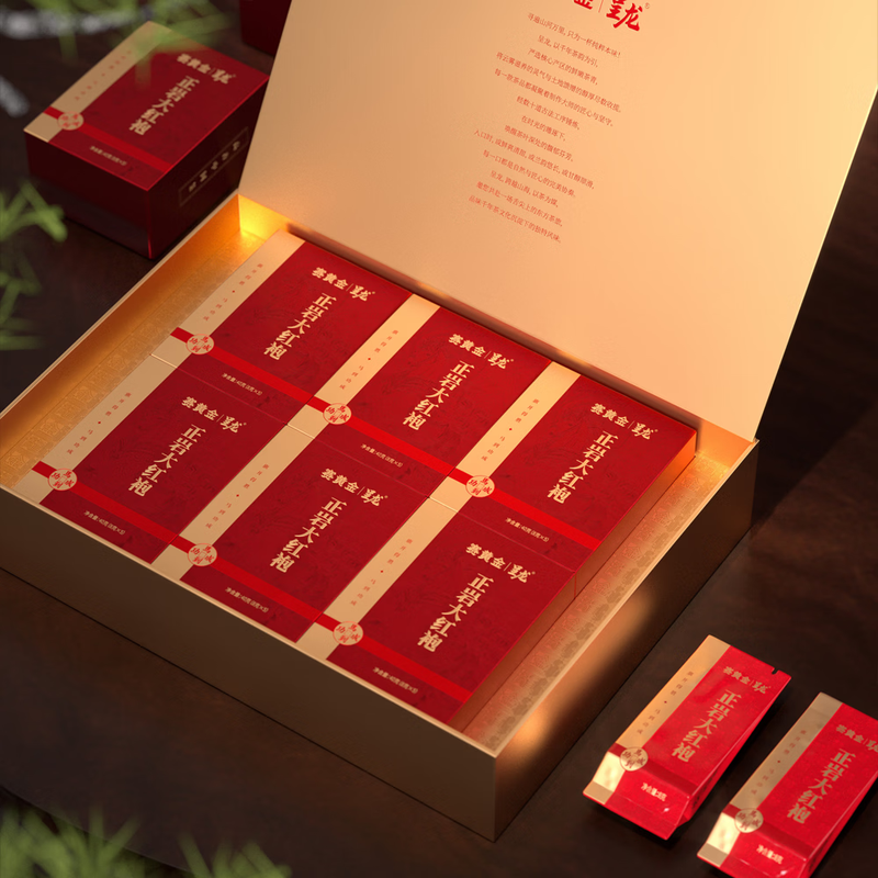 遵循武夷岩茶非遗制作工艺;中足火,茶叶香气浓郁,汤感醇厚,耐泡度高;中高端礼品茶,适合送礼、收藏或自饮