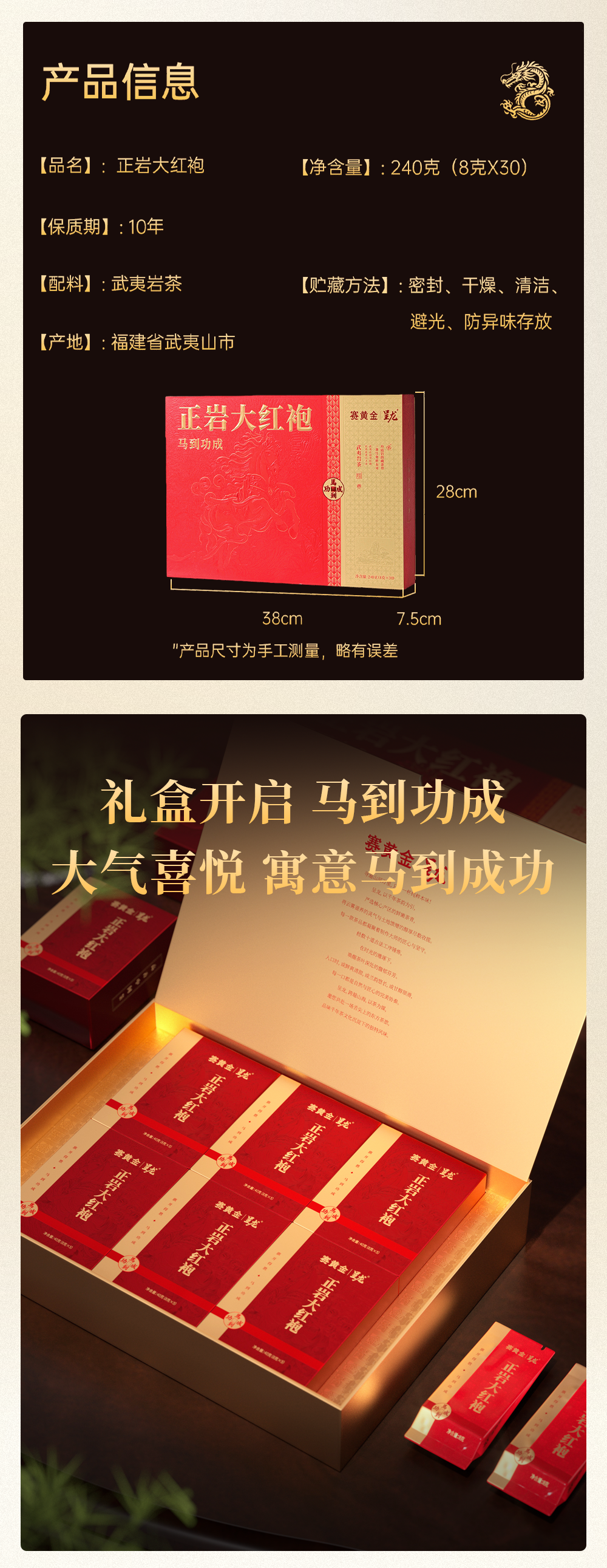赛黄金 呈龙马到功成正岩大红袍240克