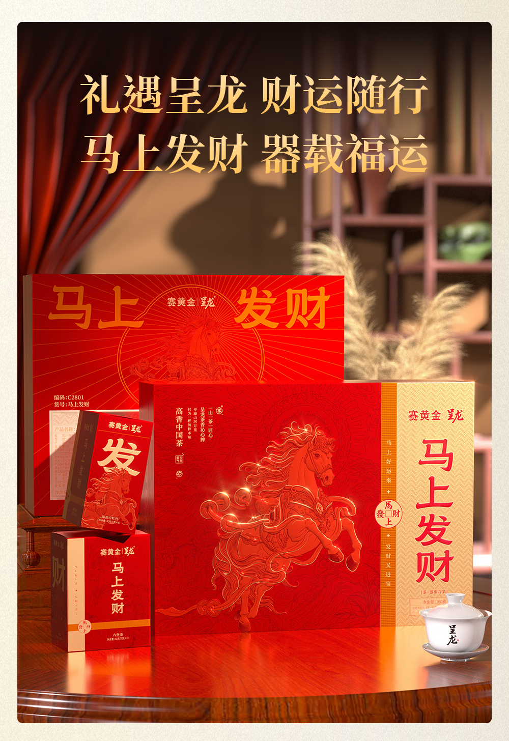 赛黄金 呈龙马上发财茶器组合套装