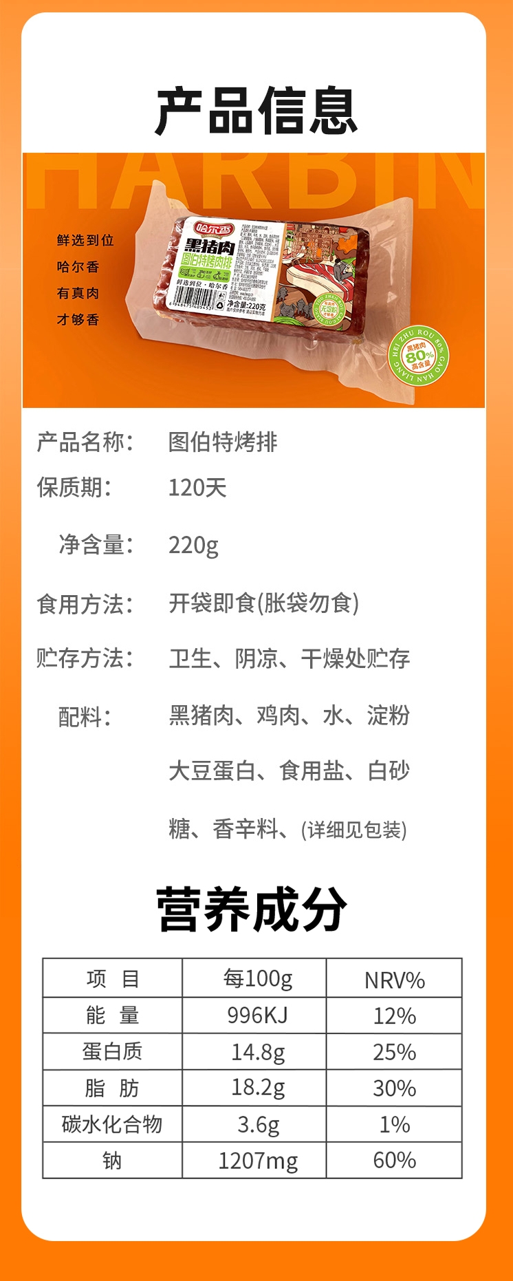 配置清单:哈尔香图伯特烤肉排220g*3袋