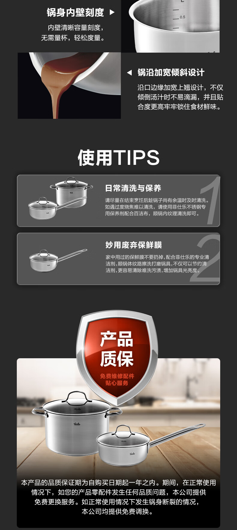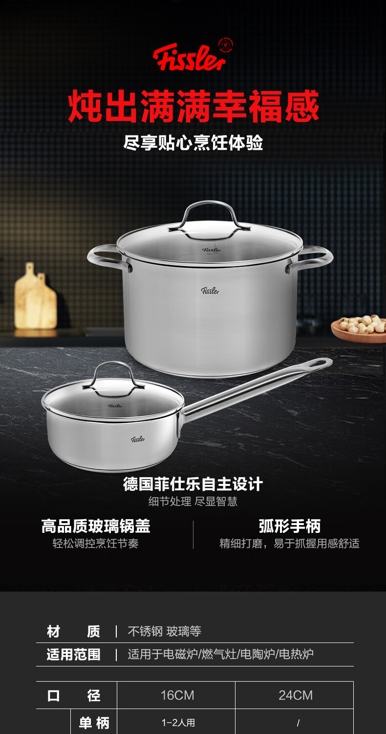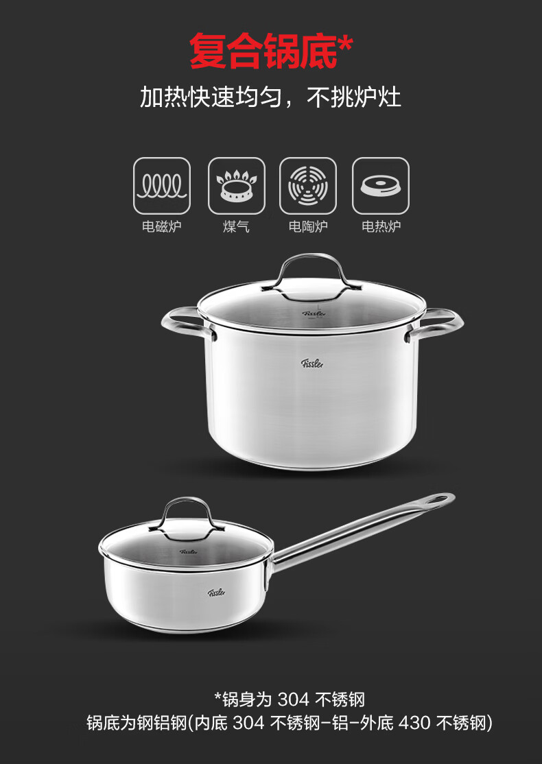 国际品牌;加热快速均匀,不挑炉灶;弧形手柄,精细打磨,易于抓握,使用感舒适。