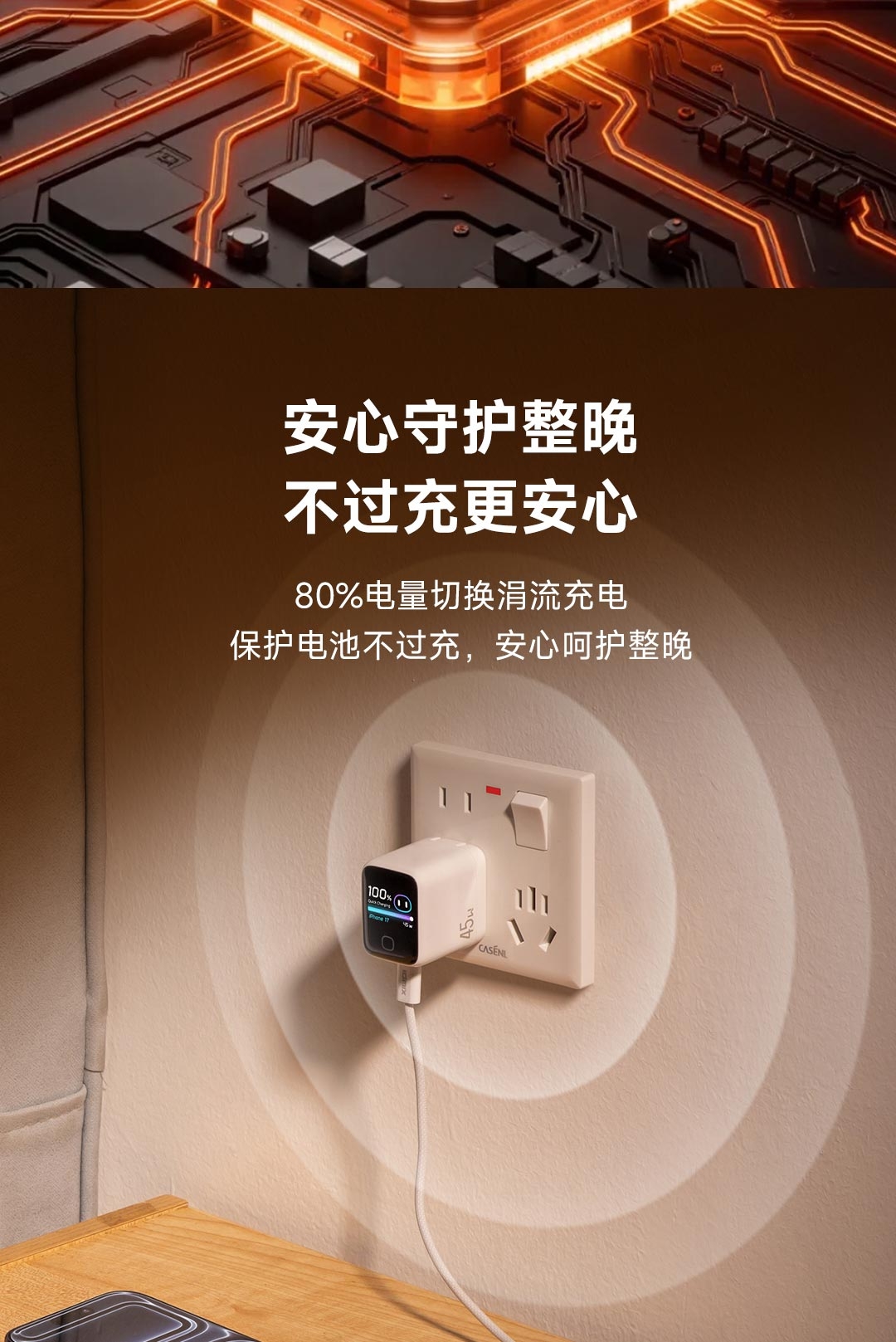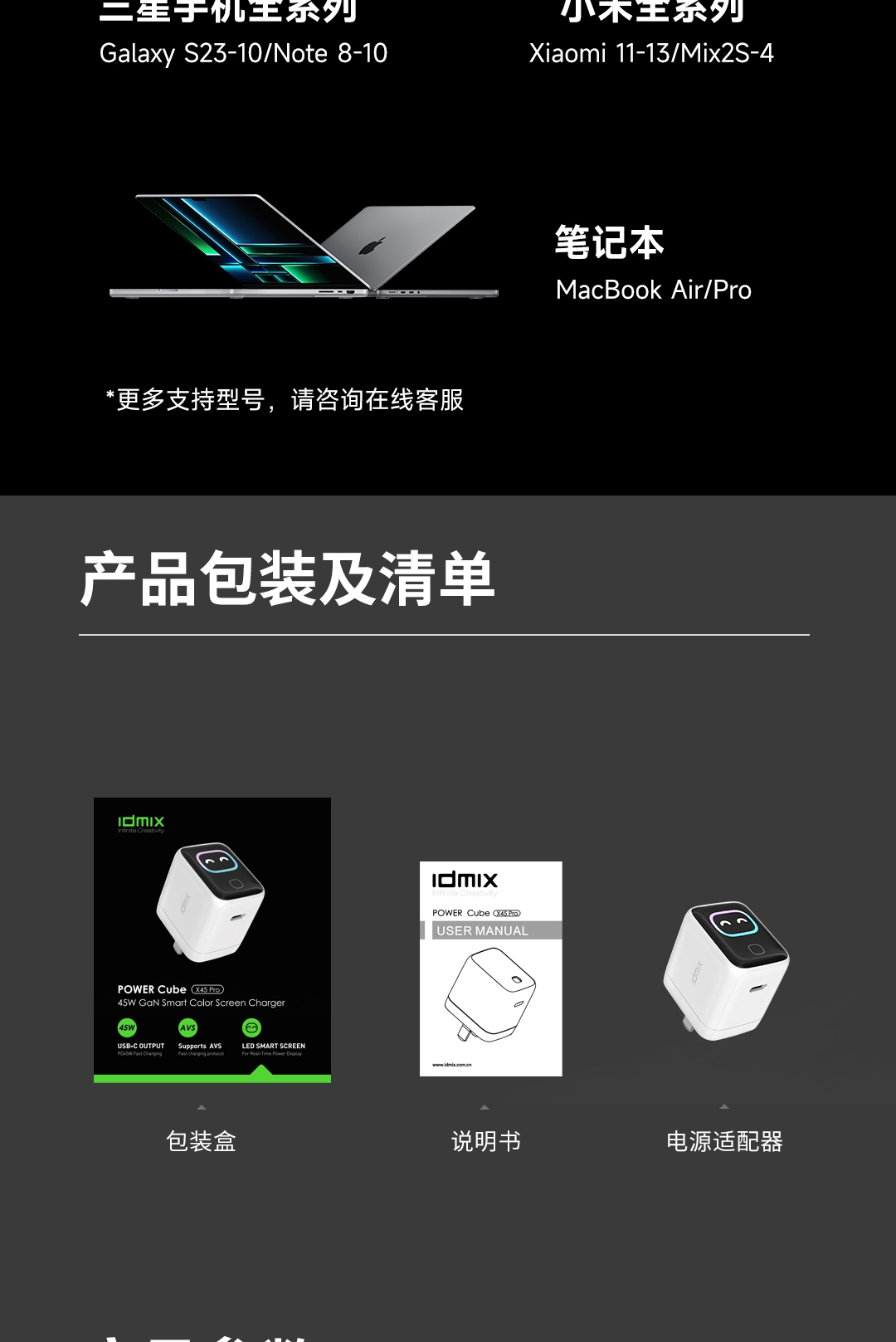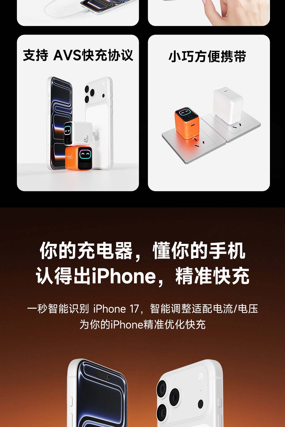 AI屏幕实时显示电量,功率等;采用航天领域新型半导体材料GaN(氮化镓);TYPE-C支持PD45w输出,AVS协议等