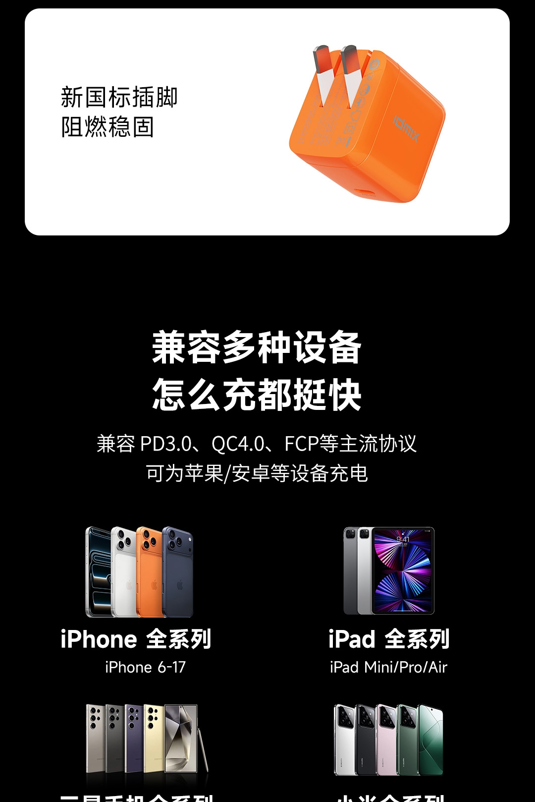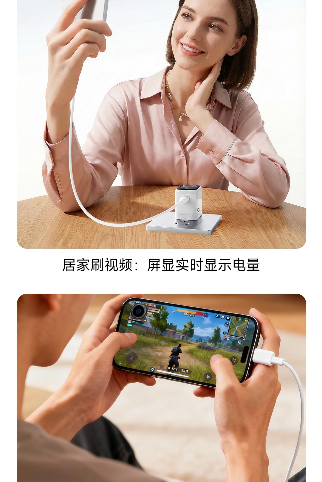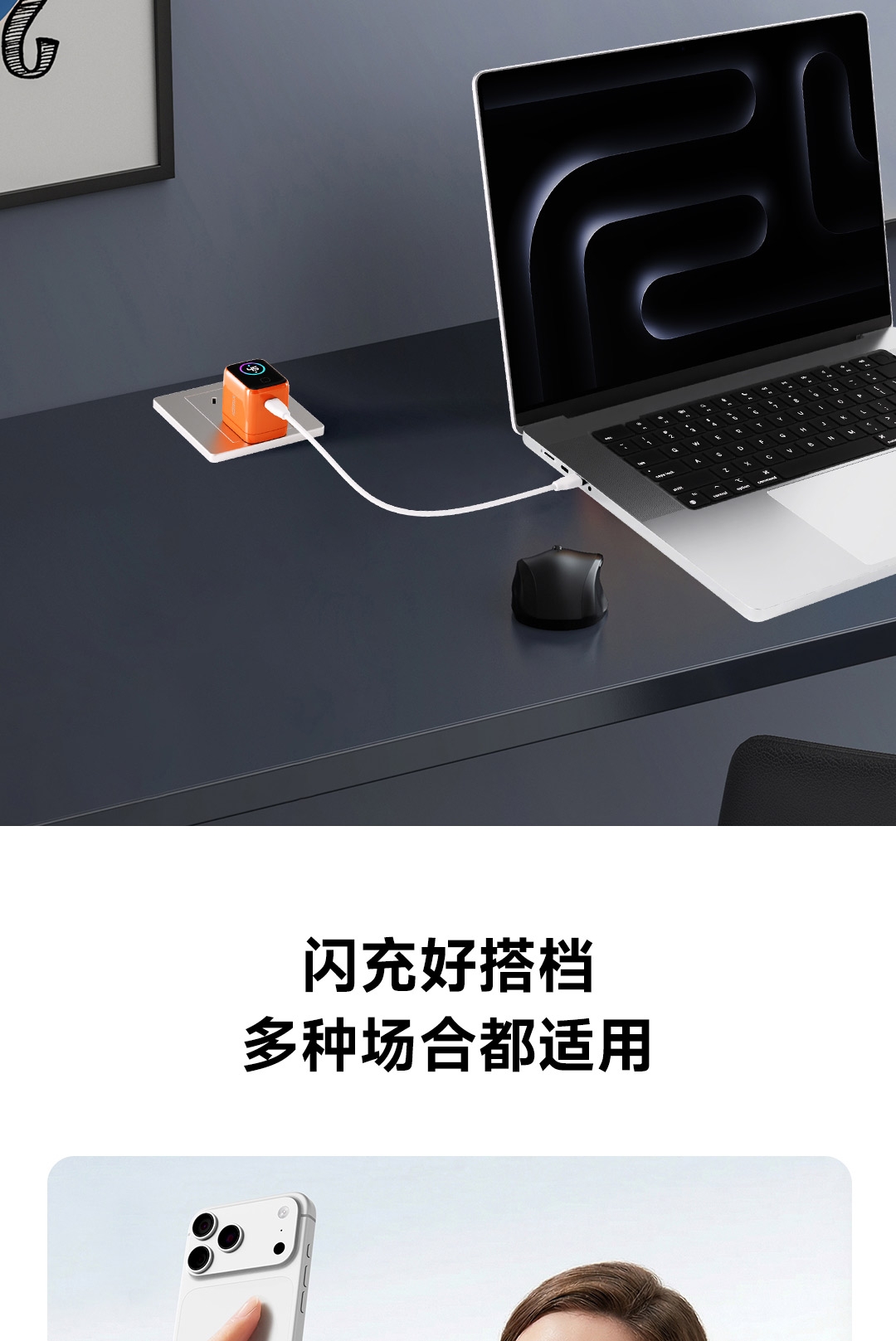 AI屏幕实时显示电量,功率等;采用航天领域新型半导体材料GaN(氮化镓);TYPE-C支持PD45w输出,AVS协议等